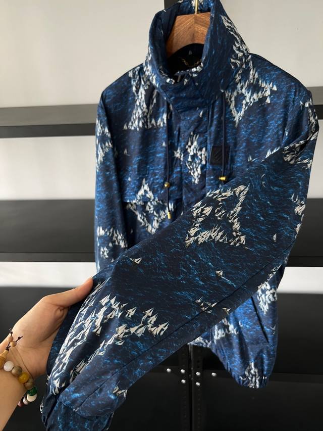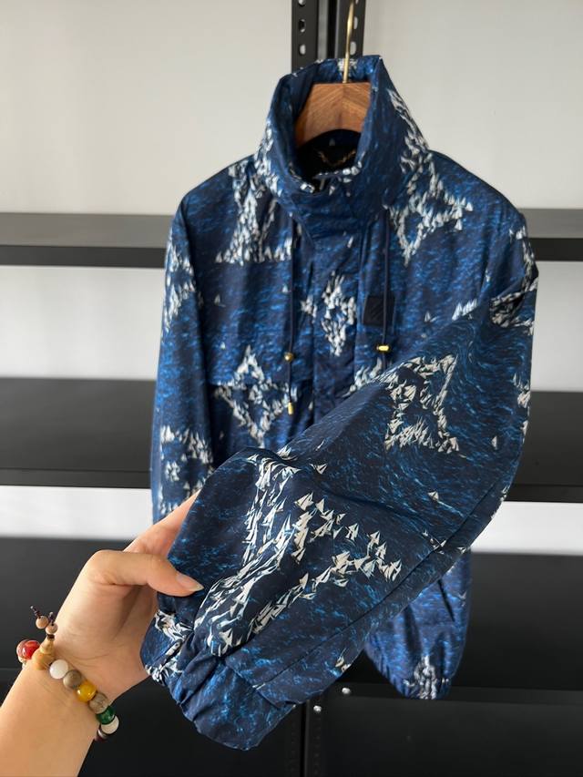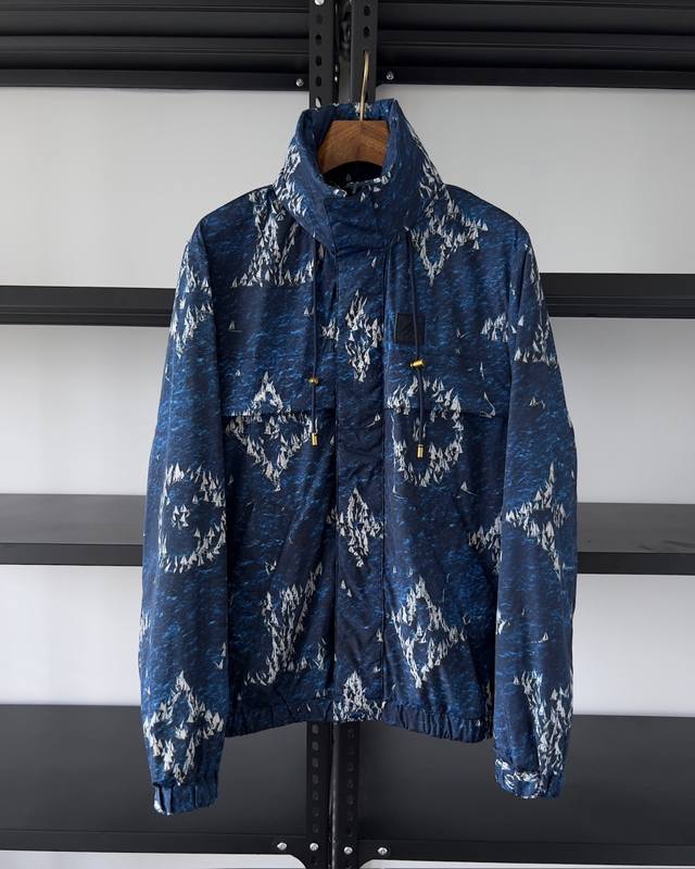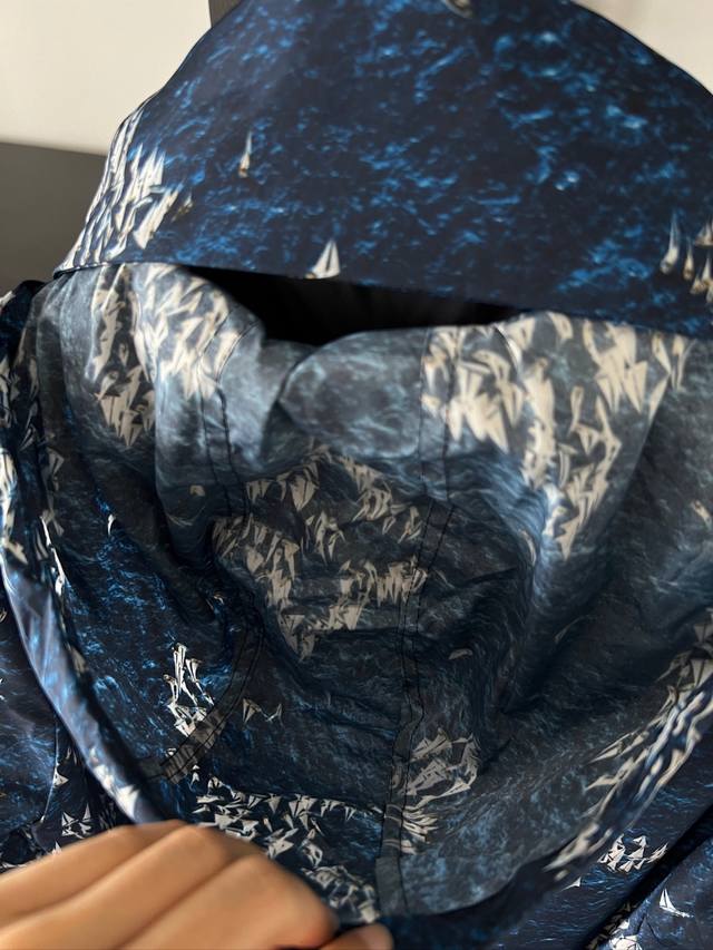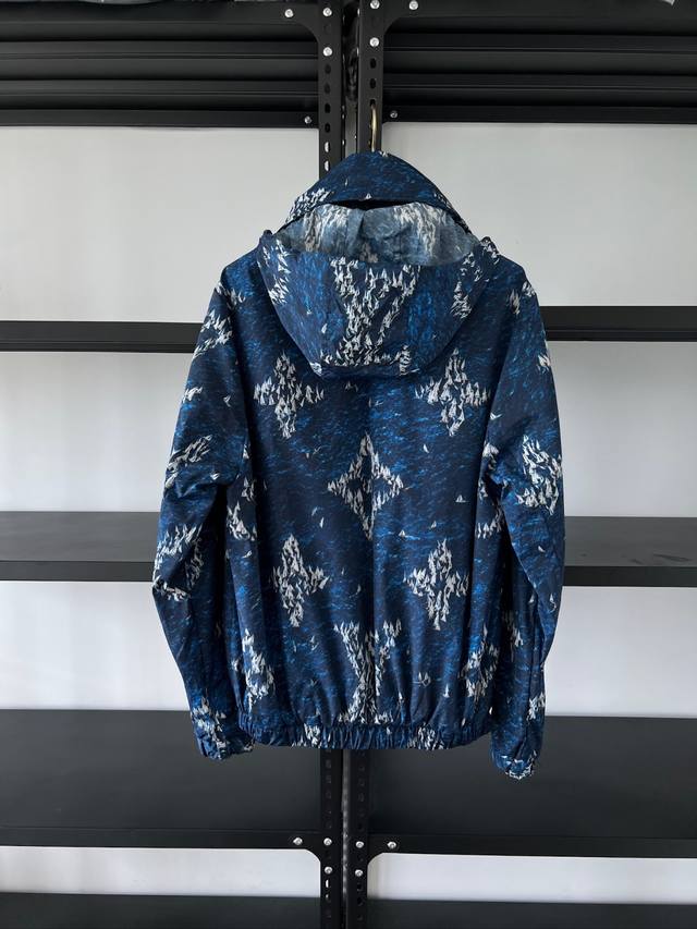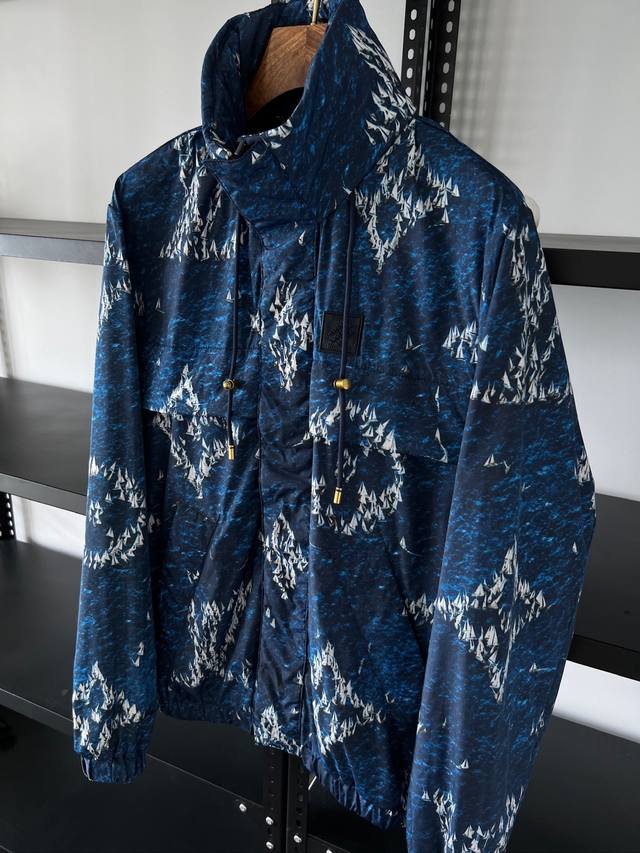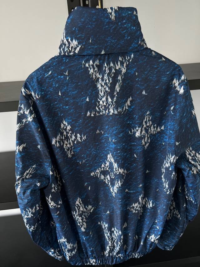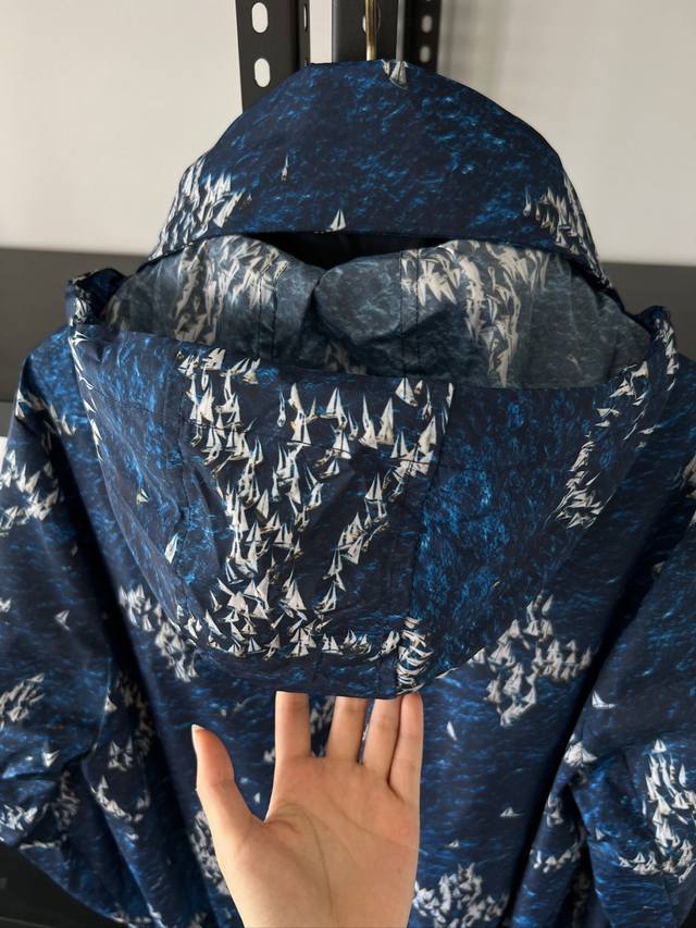 Exclusive Supply Ddd 1V 25Ss Sailing Ship Print Windproof Jacket. Original Ddd 25300 purchased and developed, using custom polyester fiber fabric with excellent wrinkle resistance and shape retention, and advanced windproof and waterproof functions. Knitted from warp and weft yarns, the full-width Damier Monogram pattern is processed by image software, and then the printing ink is directly sprayed onto the fabric through the nozzle of an inkjet printer according to the computer control system, perfectly integrated into the fabric fibers. The semi-finished printing process, involving alignment and layout cutting, infrared laser positioning cutting, manual positioning and hand cutting, and full-body laser alignment cutting, results in extremely high material consumption. Custom molds are available for zippers, bells, chains, and other hardware. Ddd Size: M-3XL