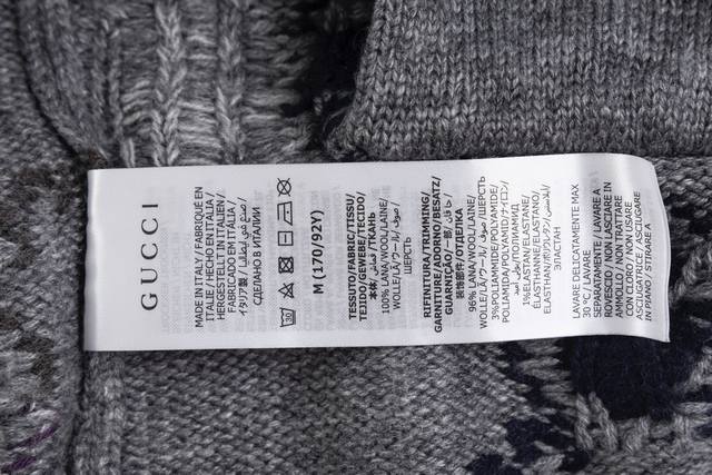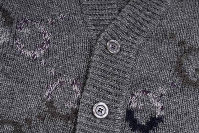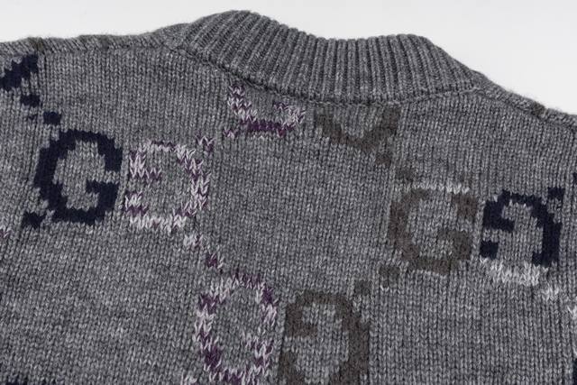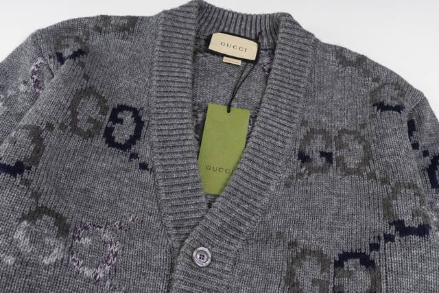 Exclusive Supply Ddd Guc Double G Gradient All-over Print Knit Cardigan. Original Ddd cardigan purchased for 14,000. Developed using 26-count 100% wool double-ply yarn. The jacquard pattern is meticulously hand-stitched and magnified from the original file to achieve the gradient effect. The base pattern underwent over 10 revisions to ensure 100% reproduction. Due to the time-consuming dyeing process for the gradient jacquard pattern yarn, up to 5 colors of yarn were used in the weaving. The placket, pockets, and shoulders feature full pattern alignment and custom-made original deep-sea shell buttons. The finished garment weighs 1.3kg, making it very thick and soft. It can be paired with other similar styles to create a fashionable look suitable for various occasions. Custom accessories, complete with tags, unisex! Ddd Size: SML XL D DD