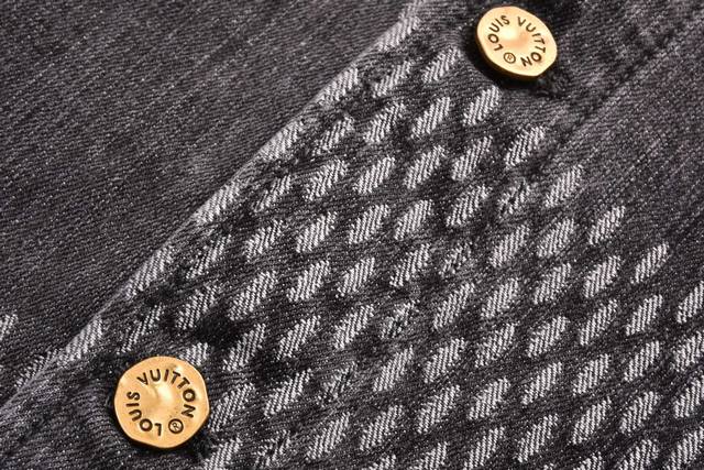 1V X Nigo 20Fw collaboration jacquard denim jacket, black/grey. Originally purchased for 20,700 RMB. Featured by Wu Moufan, this is currently the most anticipated collaboration series, considered by many to be a pre-order bestseller. The fabric is custom-woven and dyed slub cotton jacquard denim, with a distressed wash. Due to the manual layout and cutting, fabric wastage is very high. The cuffs are perfectly aligned, and the back panel features a horizontal jacquard pattern. The front and back panels are seamlessly joined, perfectly replicating the original design. The jacquard patterns are the same size and spacing, and the width is consistent, demonstrating highly complex craftsmanship. Minimum order quantity is 2000 pieces for the red-edged leather patch, antique bronze button closure, classic chain collar, back waist cincher, and stitching on the lining. Exquisite workmanship, the highest quality version available on the market. Note: This is a re-order item. Accessories such as metal tags, buttons, and labels may vary slightly between batches, which is normal. Please refer to authentic product images on various platforms. Authentic products also differ depending on their country of origin. Sizes: 46-48-50-52