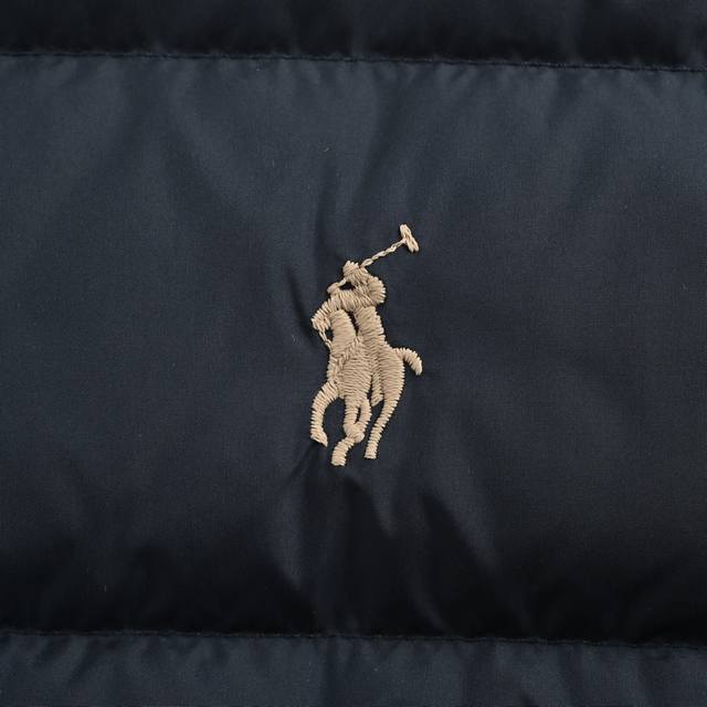 Exquisitely Retouched Photos, Worry-Free After-Sales Service. Ralph Lauren Embroidered Logo Down Jacket. Made of windproof and waterproof nylon fabric, it withstands wind and rain. Filled with 260g high-weight 90% white duck down, rigorously selected for superior warmth and minimal down leakage. The red logo on the chest is meticulously embroidered using an imported Meclo machine, replicating the original's texture. Smooth zippers and tightly sealed windproof cuffs and hem. Hang tags, care labels, eyelets, and snap buttons are all custom-made 1:1 replicas of the original, with meticulous attention to detail. Size: S-XL.