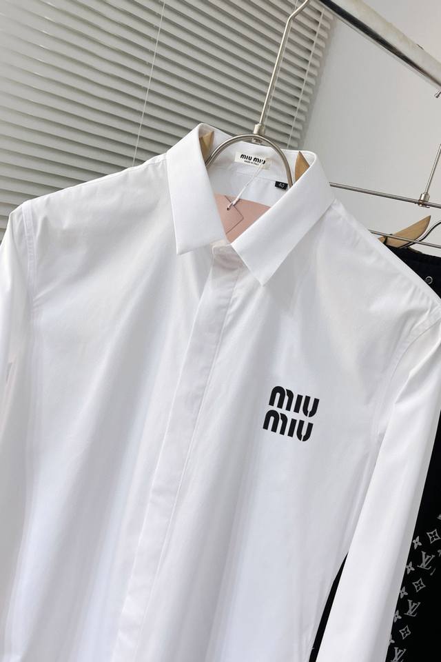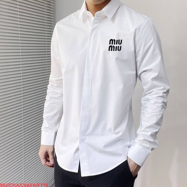 F775 Miu Miu counter's latest men's must-have long-sleeved shirt, 100% natural cotton, comfortable and breathable, original single product, original fabric, soft and comfortable, high-end and luxurious upper body, enough grade for the scene, this shirt is proud to make you satisfied and face-saving Size: 38 S 39 M 40 L 41 Xl 42 Xxl Black and white 2 colors