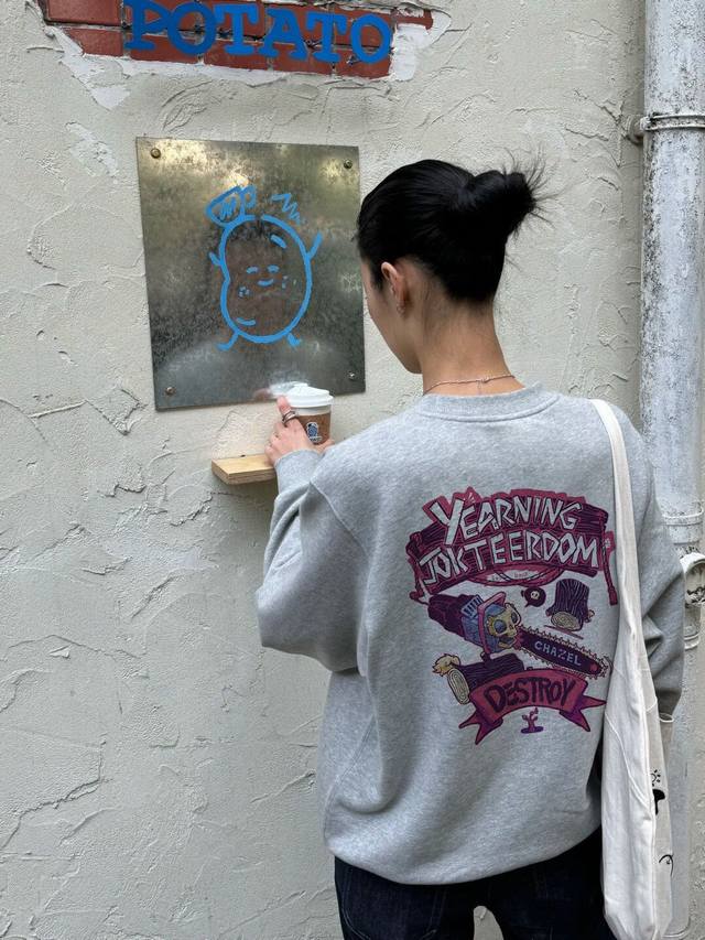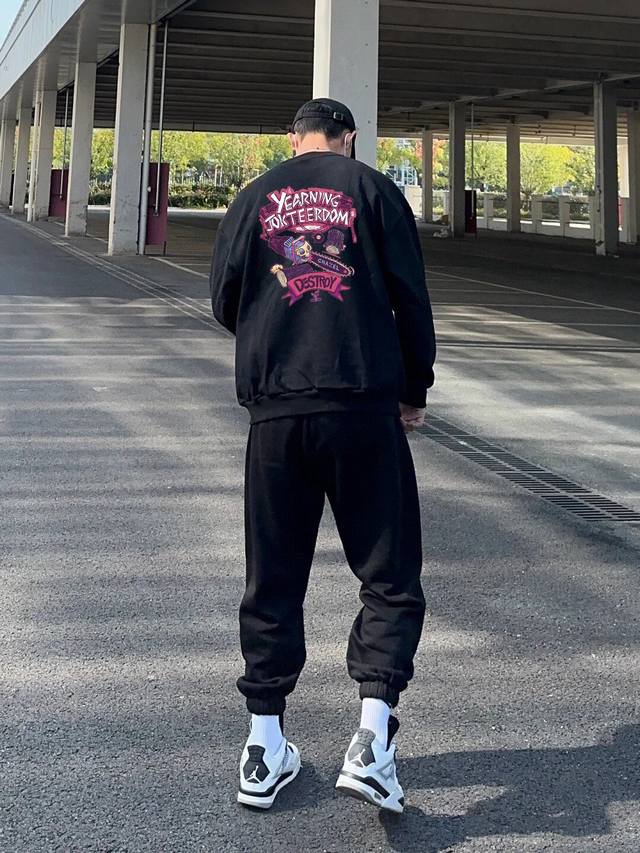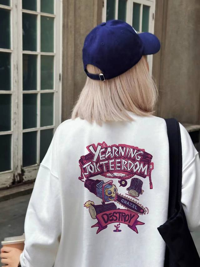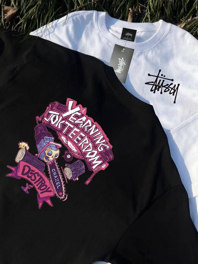 F79# High-quality terry cloth sweatshirt with Stussy co-branded logo print, matching chainsaw man logo, unisex. This sweatshirt looks simple, but the fit is truly outstanding! It's easy for both men and women to wear, and can be styled in multiple ways