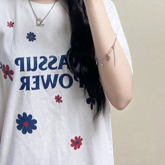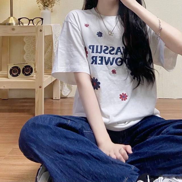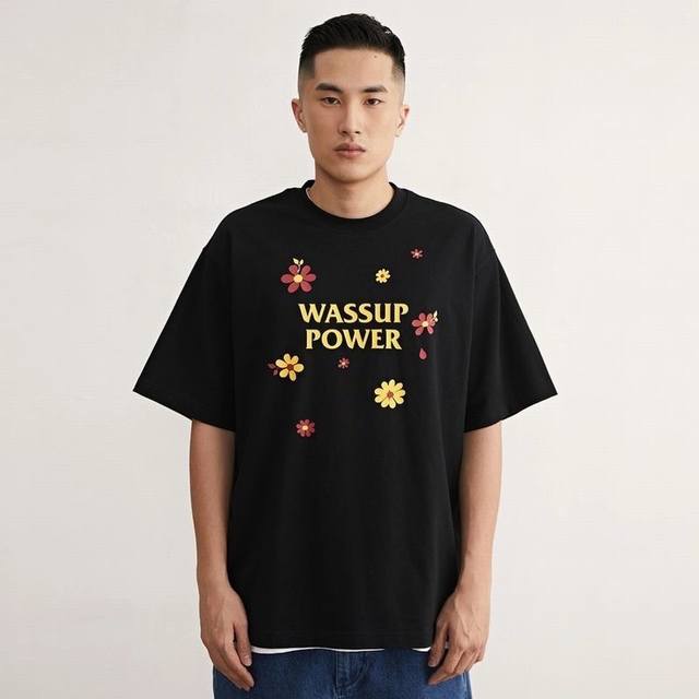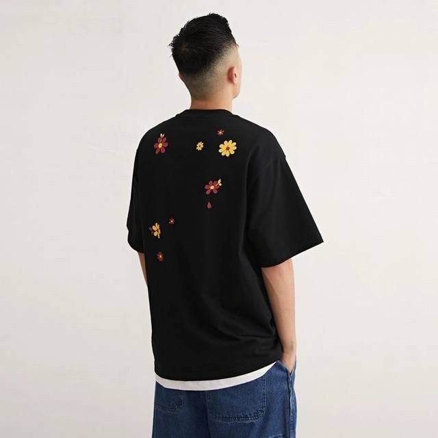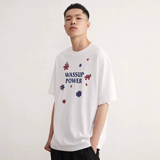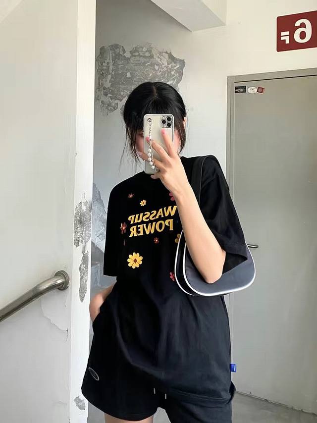Wassup2640 Spring/Summer New Floral T-Shirt, Trendy Couple Style, Autumn/Spring Black Casual Couple Pure Cotton Loose Short Sleeve