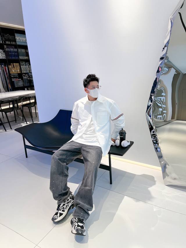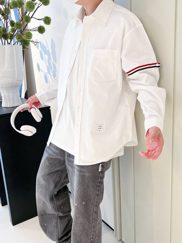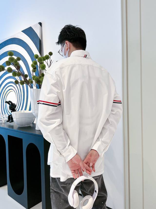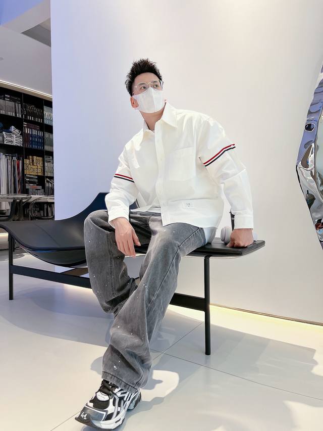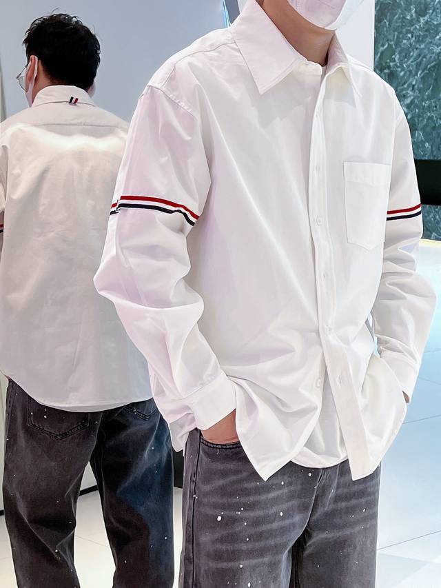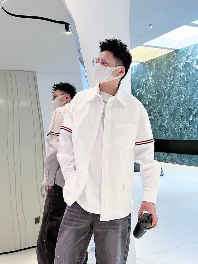 Fashionable and classic Tb best-selling light luxury shirt, can be worn alone. Classic stripes, superb quality, custom-made fabric from the boutique, high thread count and high density, fashionable and avant-garde design. Celebrity style, recommended on Xiaohongshu. Colors: Black, White. M-3X