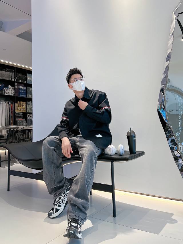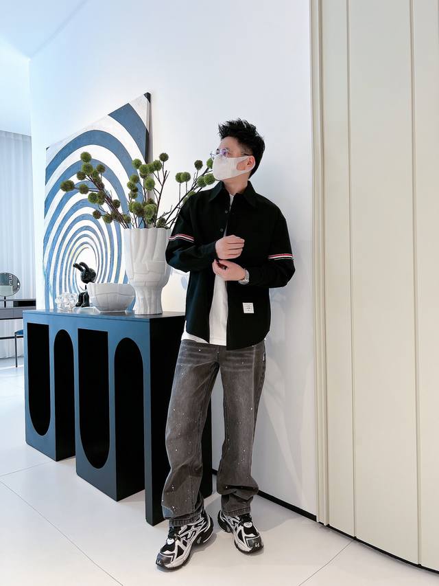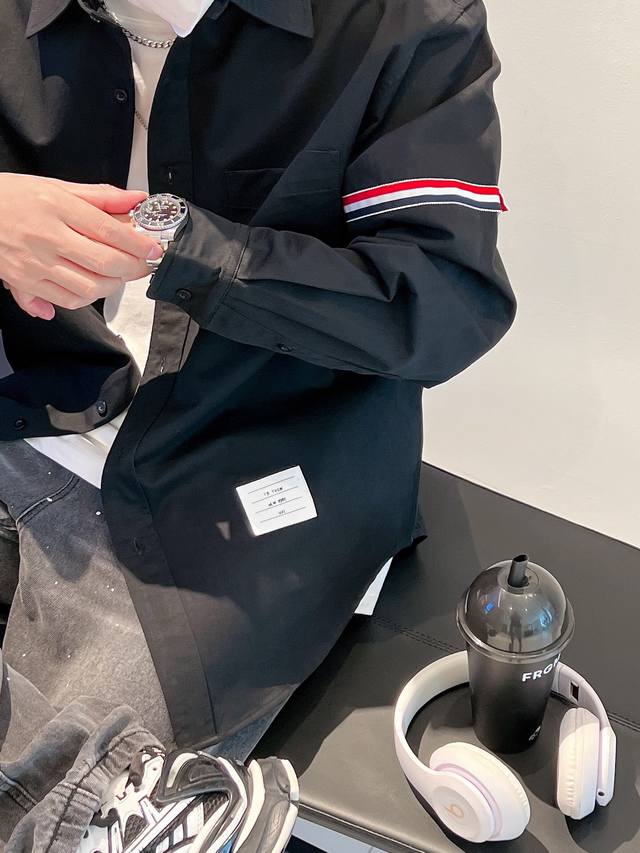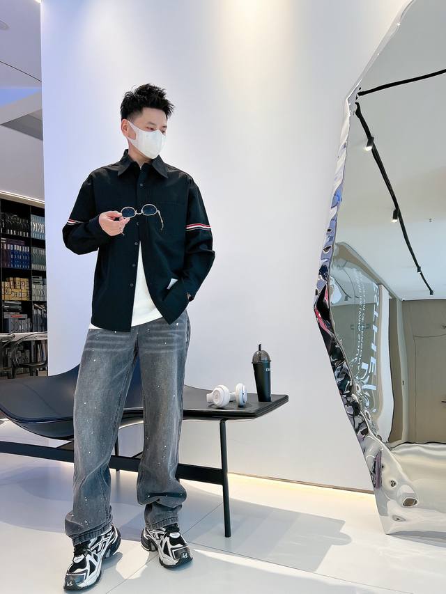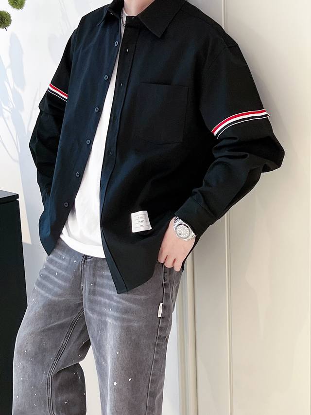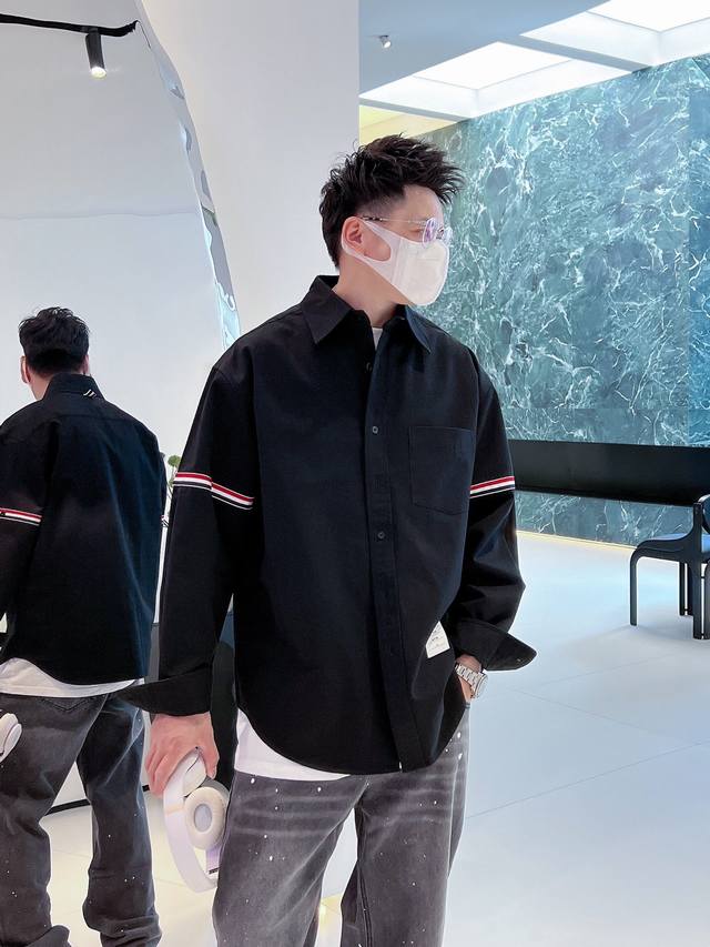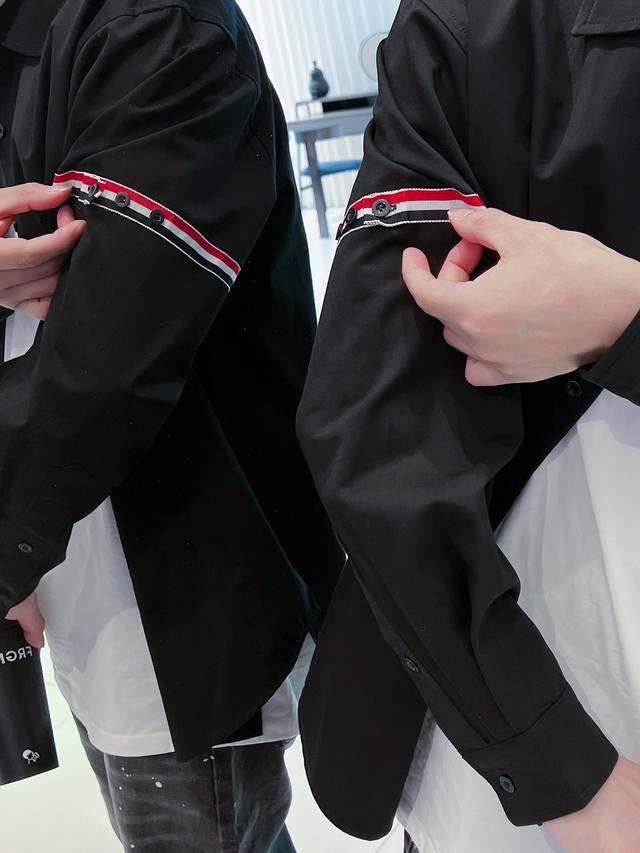 Fashionable and classic Tb best-selling light luxury shirt, can be worn alone. Classic stripes, superb quality, custom-made fabric from the boutique, high thread count and high density, fashionable and avant-garde design. Celebrity style, recommended on Xiaohongshu. Colors: Black, White. M-3X