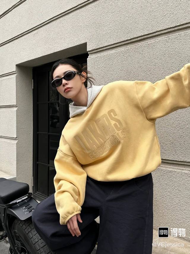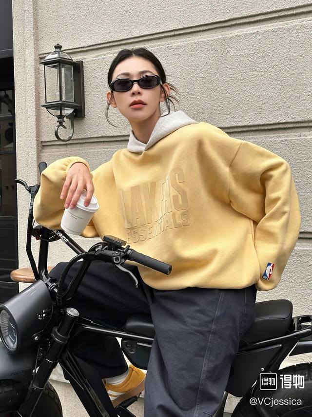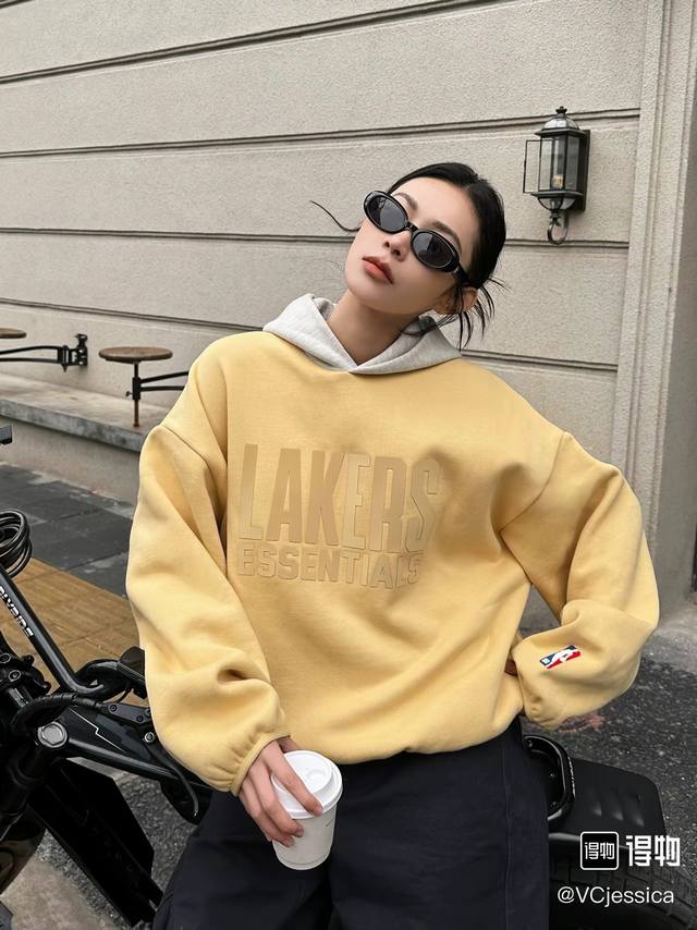 Fear Of God Essentials X NBA Collaboration Ss25 NBA Allstar Pull Over Hoodie Lakers Los Angeles Lakers American Heavyweight Letter Print Patchwork Hoodie Unisex