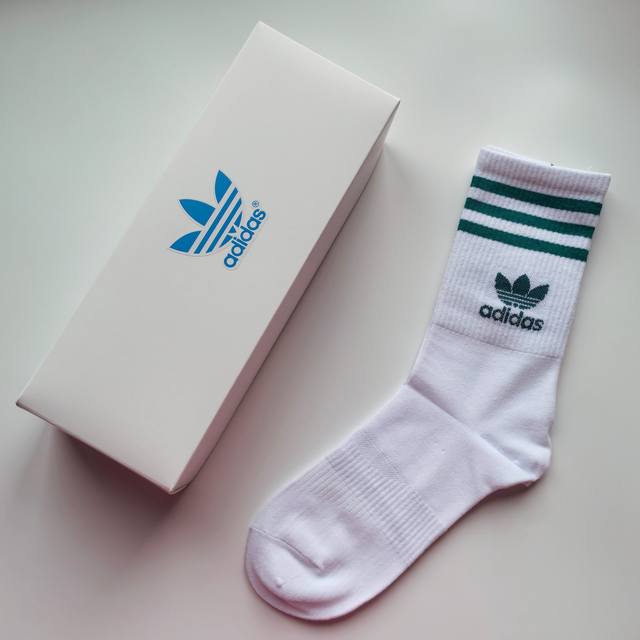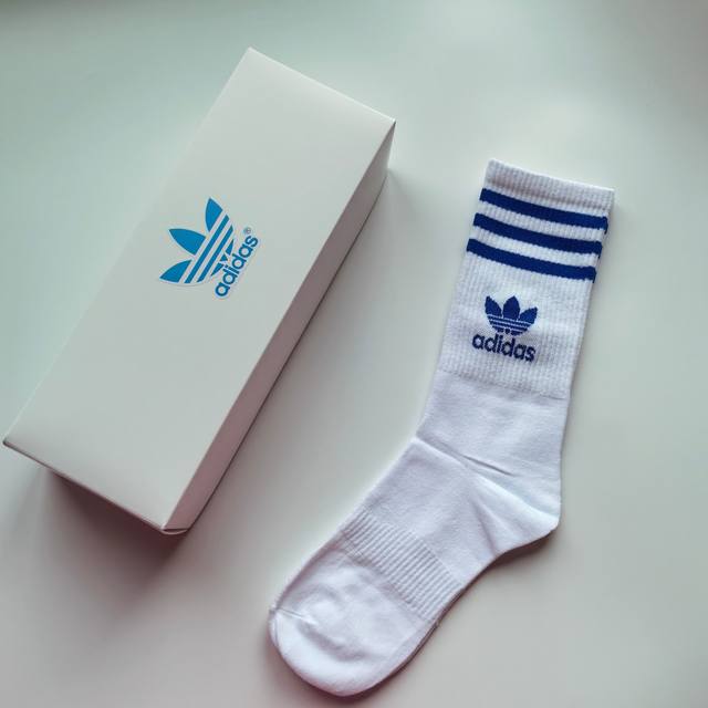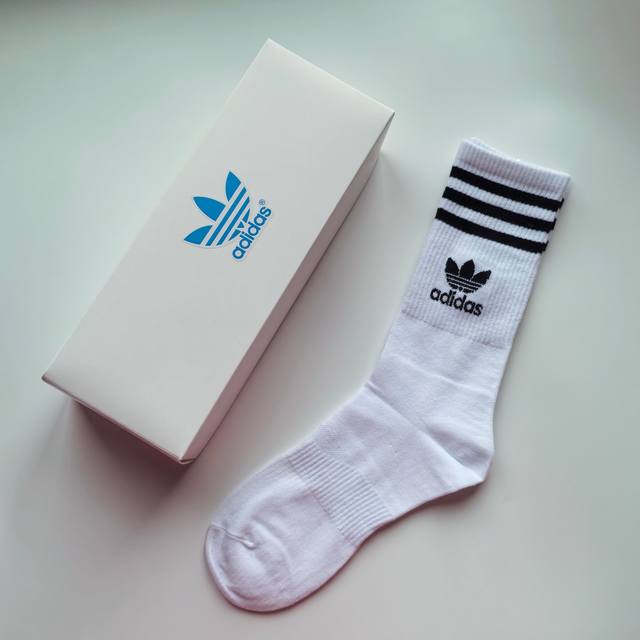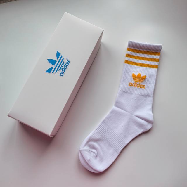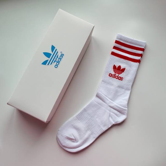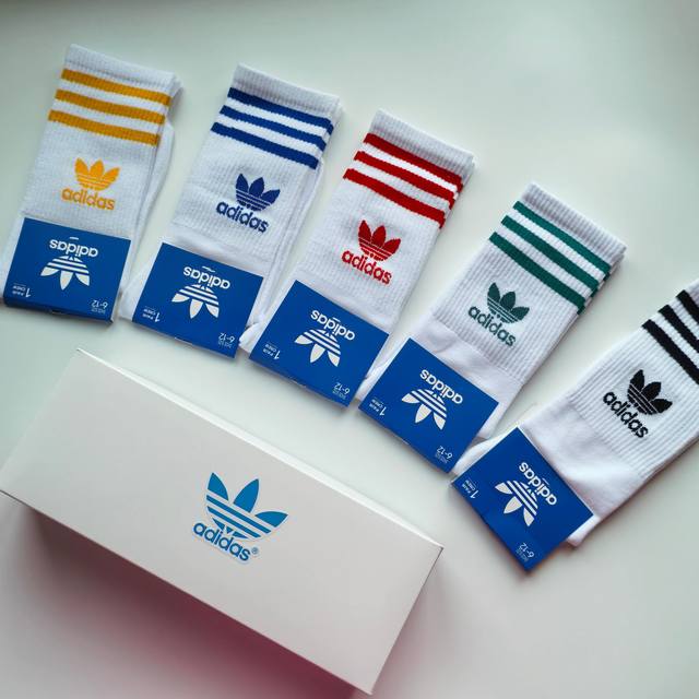 Five pairs in a box, Adidas trefoil white long tube color striped socks boxed s