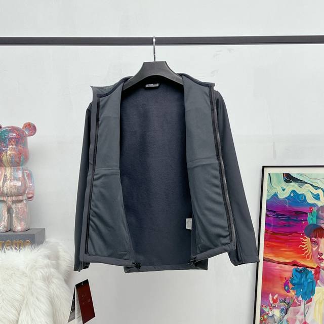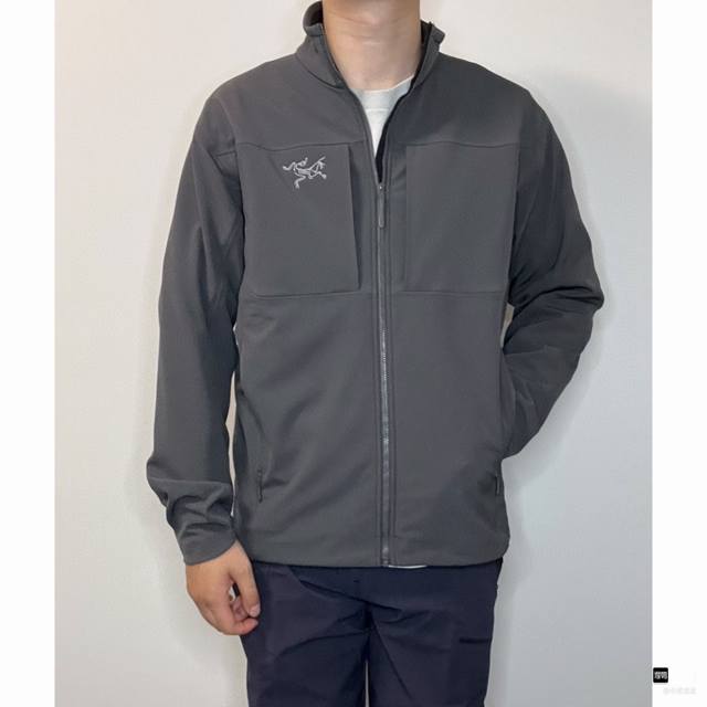 100% worry-free for any trendy occasion outdoor all-weather series Essentials Gamma Mx softshell fleece-lined windproof jacket, regular fit. Composition: Fortius 2.0 outer layer: 85% nylon, 15% spandex; inner layer: 94% polyester, 6% spandex. Gamma is Arc'teryx's general-purpose softshell product line. "Mx" indicates it's suitable for mixed weather conditions, offering well-rounded performance without a clear focus. The Gamma Mx is Arc'teryx's top-selling softshell, a renowned all-rounder, suitable for both urban and outdoor use. It features a thin fleece lining, ideal for mixed activities in changeable weather. The Gamma Mx has numerous pockets: two symmetrical chest pockets and two hand pockets on the front. When necessary, opening all pockets can aid in ventilation. The older model had a seam-sealed pocket on the left arm, but this design has been removed in the new model, resulting in a more minimalist overall style. The fabric is treated with DWR (waterproofing) for short-term rain, and also offers snow and stain resistance. Its breathability is better than the Windstopper, although its windproofing is slightly weaker. However, its windproof and waterproof performance, as well as the fabric quality, are superior to other models in the same series. Colors: Black, Gray. Sizes: S, M, L, XL, XL.
