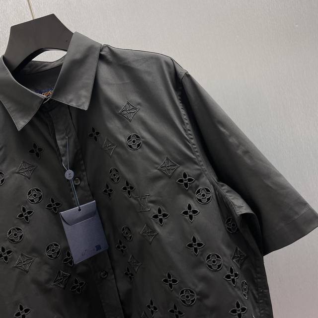 Floral Embroidery Short-Sleeve Shirt (Ddd) Size: S-XL (Ddd) This short-sleeve shirt is crafted from smooth cotton poplin. Using British embroidery techniques, the Monogram flowers are rendered in gradient colors, subtly incorporating the mountain logo. A drawstring waist showcases creative design, and the Marqve Lyuitton Deposee appliqu