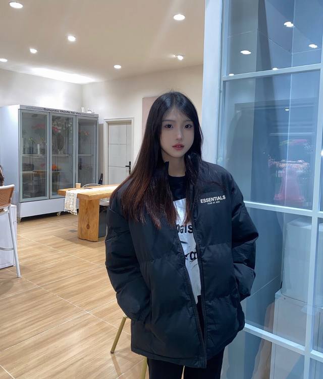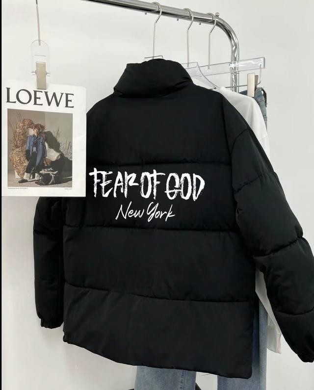 Fog Essentials Loose-fitting Cotton-padded Jacket with Stand Collar