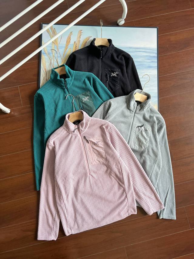 Warehouse Price: 1.2K! Wave-Textured Stand-Collar Warm Fleece Jacket for Fall/Winter Outdoors. Half-Zip Base Layer.
