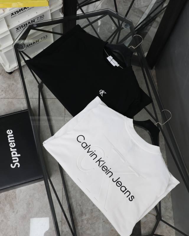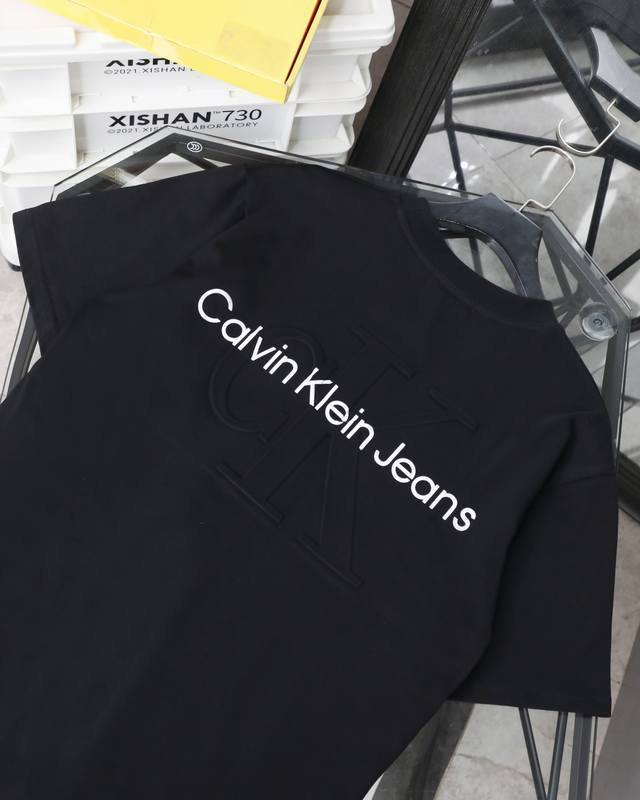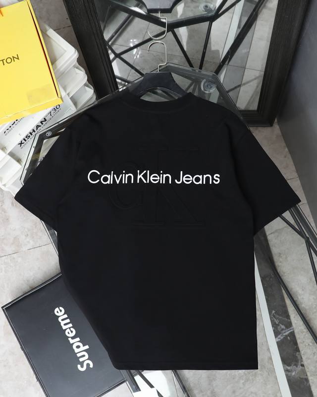 top version Calvin Klein-Ck round neck short sleeves with letters printed on the back