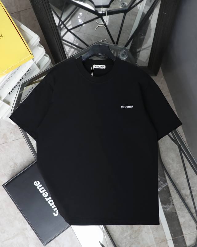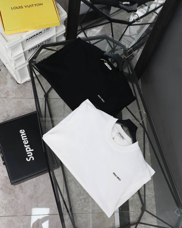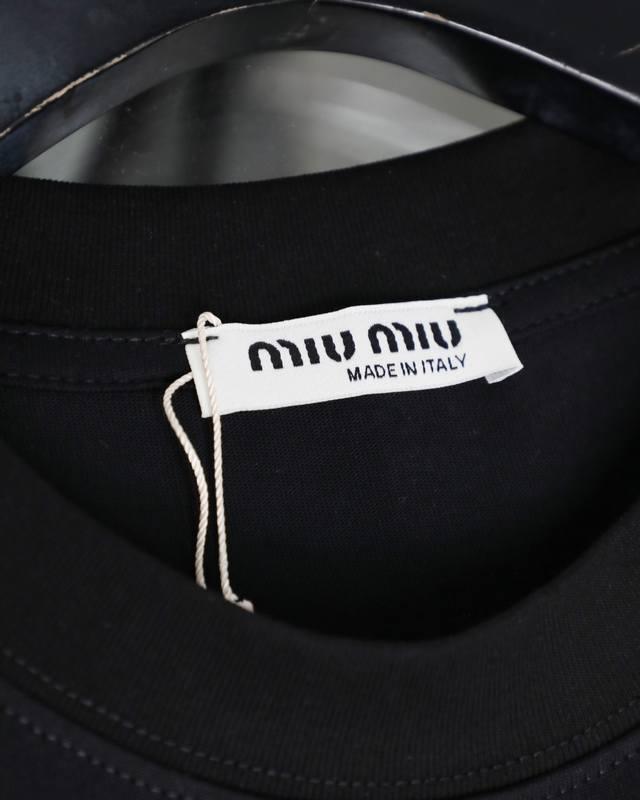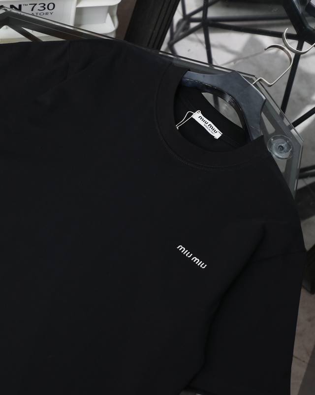 for Top version Miumiu basic embroidered short sleeves 2025 new short sleeves ar