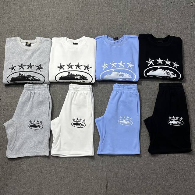 Four-star round neck suit, top 6917# p, pants 5817# p90 , black, white, gray,
