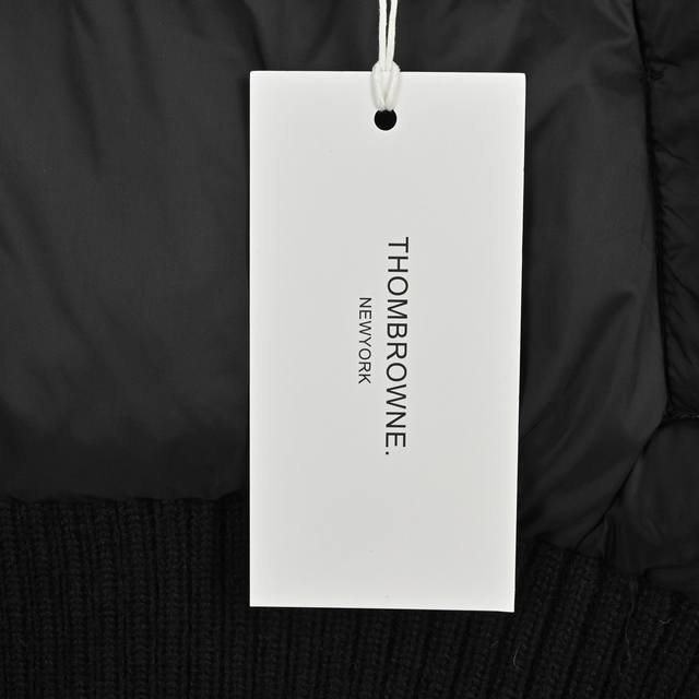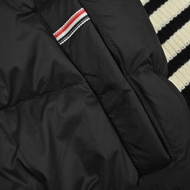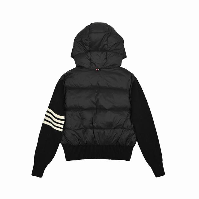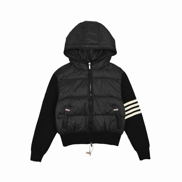 Thombrowne T-brand knit patchwork four-stripe hooded 90% white duck down jacket women's casual preppy style