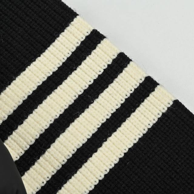 Four-stripe striped knit patchwork down jacket