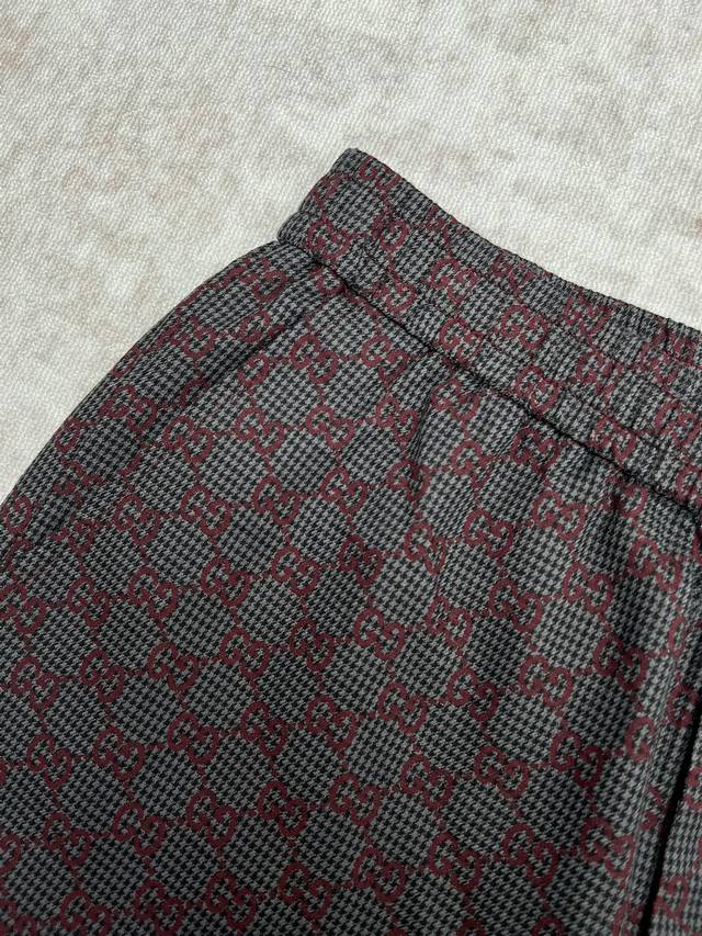 G brand 25Ss new Gg all-over print trousers. The print is all over the body and