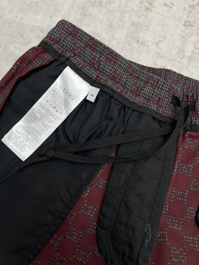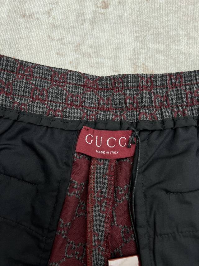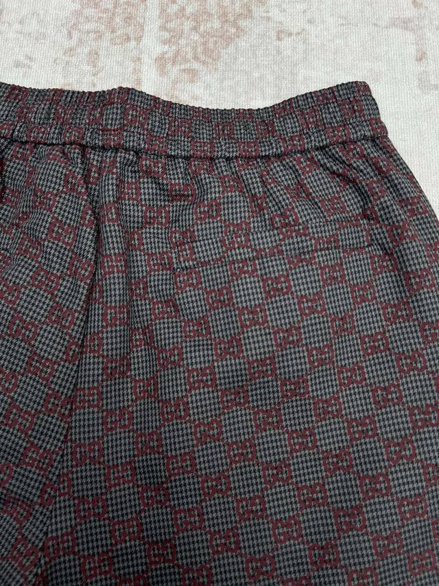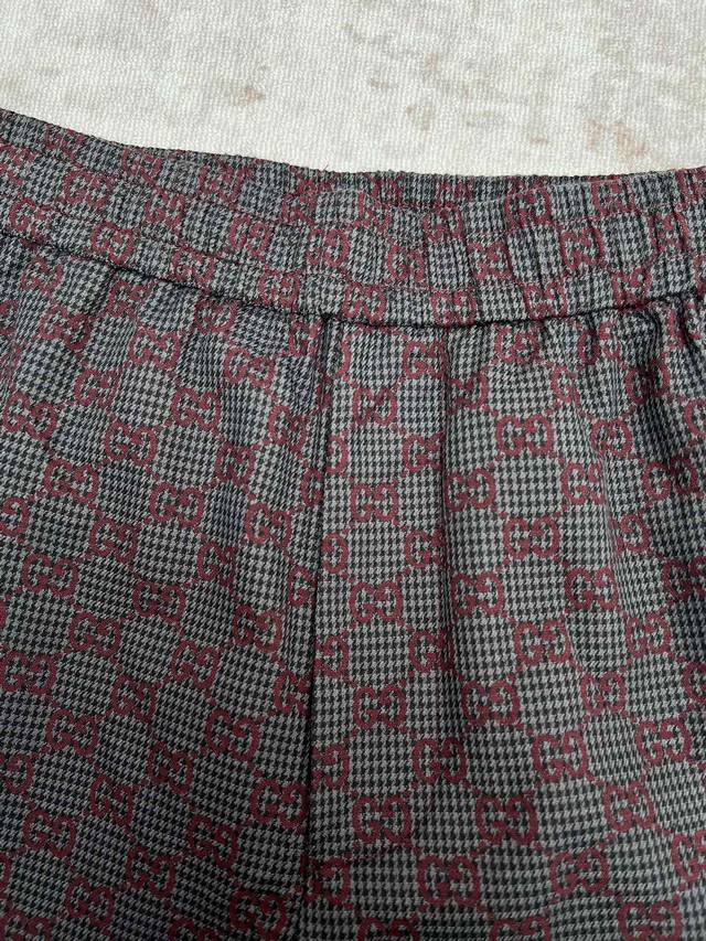 G brand 25Ss new Gg all-over print trousers. The print is all over the body and has side pockets. High-quality version available. Sizes: S, M, L, XL.