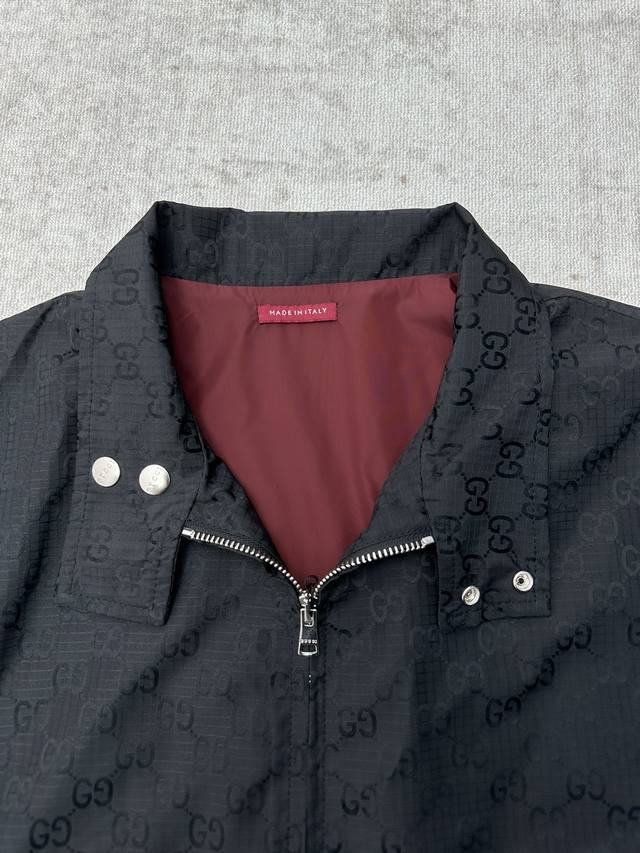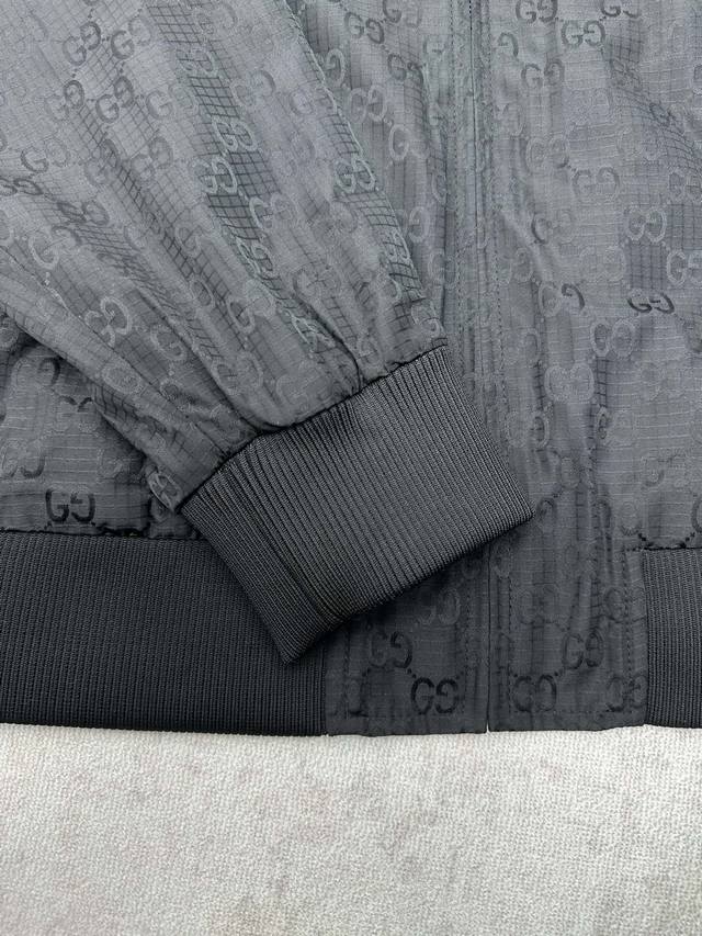 G Brand 25Ss New GG Checkered Zip-Up Jacket. This collection uses various fabric techniques to interpret the iconic GG element, presenting a rich visual texture. This zip-up jacket is made from a selection of dark blue GG polyester checkered fabric, paired with a quilted lining for a structured silhouette and a comfortable experience. Sizes: 48.5.52.54.56.