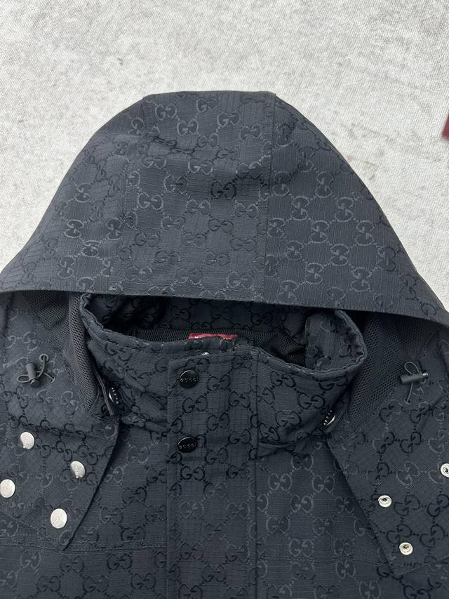 G brand 25Ss new plaid zip-up hooded jacket. In this collection, the signature GG pattern is presented through different textile techniques, creating a rich visual effect. Sizes: 48, 50, 52, 54, 56.