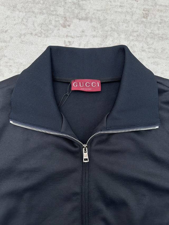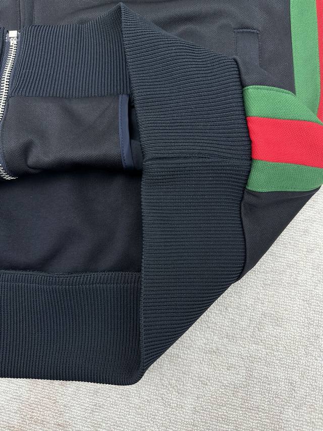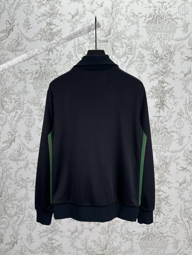 G brand 25Ss new plain knit zip-up jacket with woven ribbon detailing. The Gg logo and ribbon design pay homage to the brand's rich heritage and Italian origins, showcasing its unwavering pursuit of exquisite craftsmanship. This zip-up jacket is crafted from plain knit fabric and cleverly incorporates woven ribbon details. Sizes: S, M, L, XL.