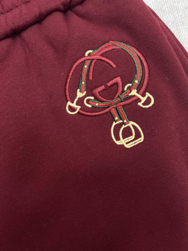 G brand 25Ss new red embroidered trousers. This trousers feature the classic double G logo combined with embroidered elements of the Year of the Horse. Paired with a matching sweatshirt. High-quality Ddd. Sizes: S, M, L, XL. DDD