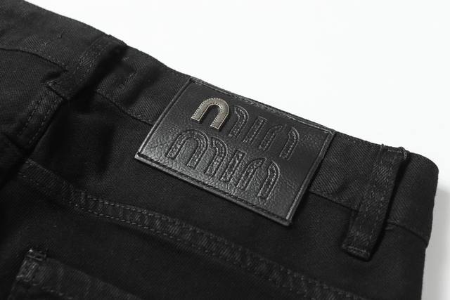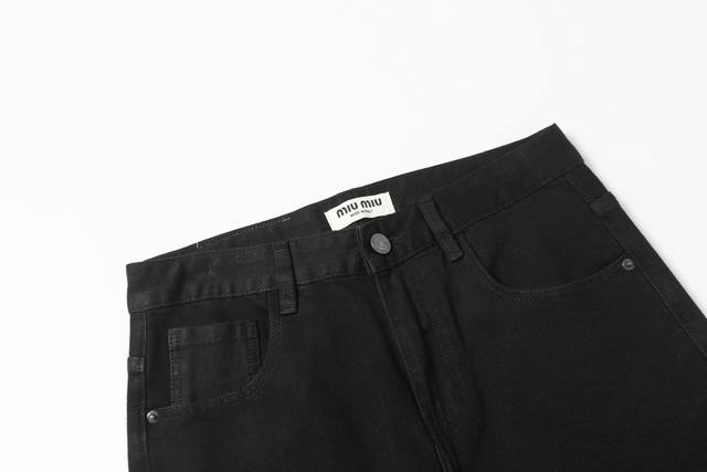 G303# Black Miu Miu 2025 Spring/Summer All-Season Jeans, custom-made full hardware, brand new design and craftsmanship, exquisite workmanship, perfect details, high-quality version. Sizes: 28-38 (excluding 35-37).