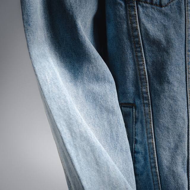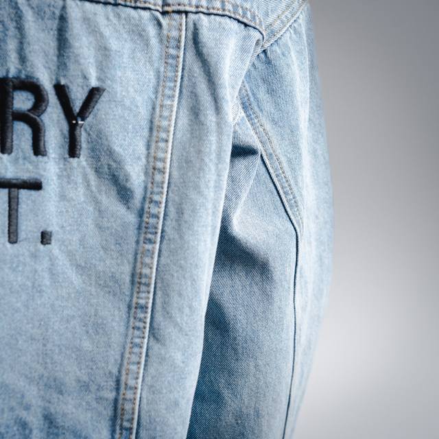 The fabric is very thick, the garment is heavily washed and distressed, the color presents a white washed cow effect, and the whole garment is accompanied by irregular washing patterns, the actual effect is very stunning, all the buttons on the whole garment are custom-made with brass engraved hardware, the pocket position is reinforced with the jujube knot process, the printing paste is made of environmentally friendly gouache paste mixed in proportion, the imported paste is hand-painted and adheres to the fabric with strong performance, high water resistance, and will not desizing or fading after multiple washings. Each process is compact and linked together, with strict requirements on process technology and high quality requirements for shipment, and the finished product is natural and beautiful