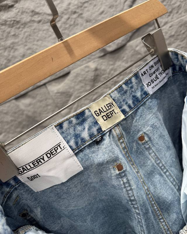 Gallery Dept. Slightly flared patchwork distressed washed jeans. High-quality. Premium quality. Available in different washes, perfect for both slender and thicker legs. The slightly flared silhouette is flattering, and the timeless, just-right length makes it easy to style with any style. A wardrobe essential! The fabric is stiff yet soft without sacrificing texture. The wash process is meticulous, making this a must-have! Sizes: 28, 30, 32, 34, 36. Waist: 71, 76, 81, 86, 91. Hips: 96, 101, 106, 111, 116. Length: 101, 103, 105, 107, 109.