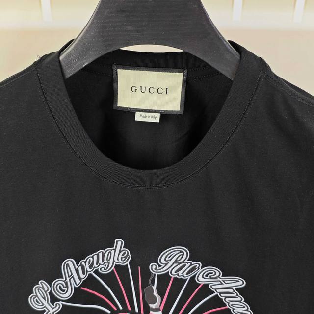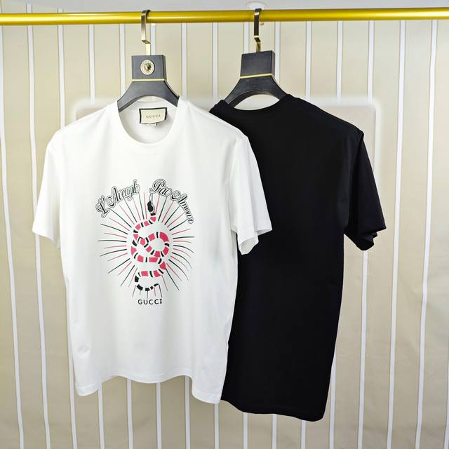 G*Cci Gucci 2025 spring and summer new original men's round neck short-sleeved T-shirt counter simultaneous sale high-end quality high version Os version wide version popular chest printed rubber letter Logo design custom imported double-strand 100% cotton fabric soft and delicate to the touch skin-friendly and comfortable to wear OEM factory P fine workmanship very handsome and stylish men's must-have item three complete sizes: S-5Xl maximum size can wear about 220 pounds please report height and weight when placing an order black white