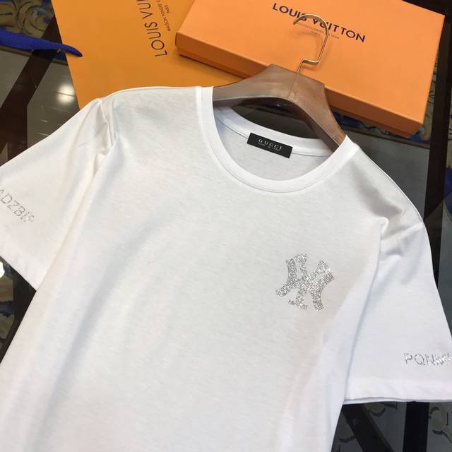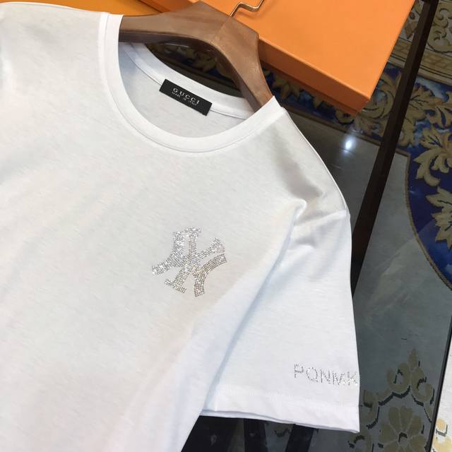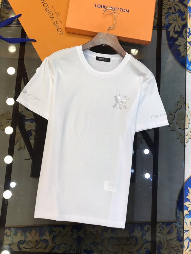 G*Cci Gucci Spring Newest Men's Short-Sleeve T-Shirt, Official Website Synchronized, High-End Quality Bestseller, Ny Series Customized European Imported Double Mercerized Cotton Fabric, Soft and Delicate to the Touch, Skin-Friendly and Comfortable to Wear, Super Heavy-Duty Design with Hot-Plated Rhinestone Logo on Chest and Sleeves, Versatile and Casual, Looks Great on, A Must-Have for Handsome and Trendy Men. Sizes: M-3XL, Black, White, DDD