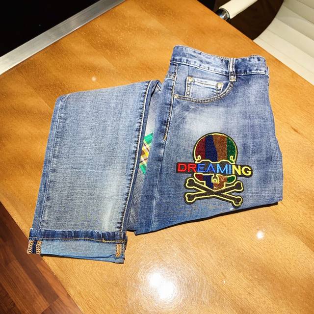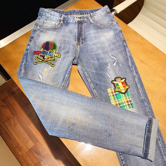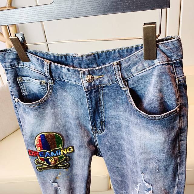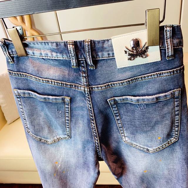 German Philipp Plein jeans, top-quality imported original, heavy-duty craftsmanship, original hardware and accessories. Made with custom-made denim fabric, perfectly matching the original. Welcome to try them on at the boutique before purchasing. Good quality stands up to comparison. Sizes: 28-36 DDD