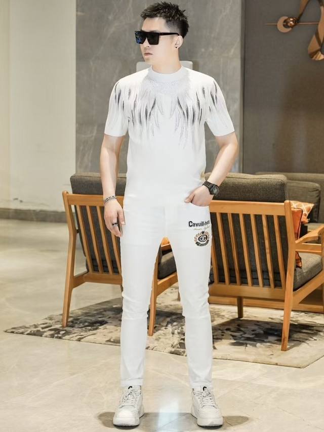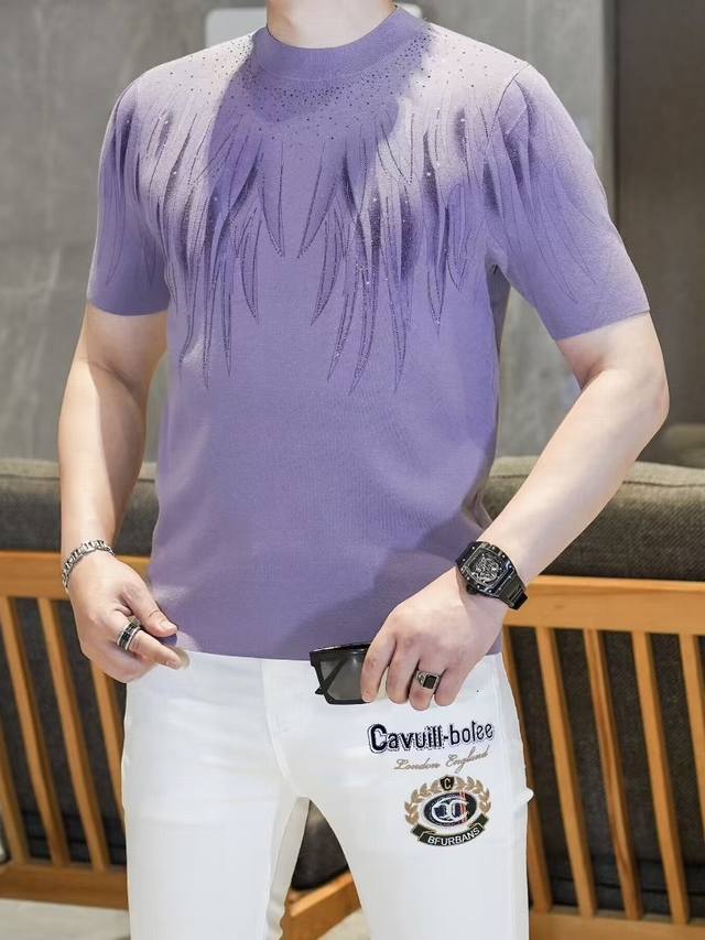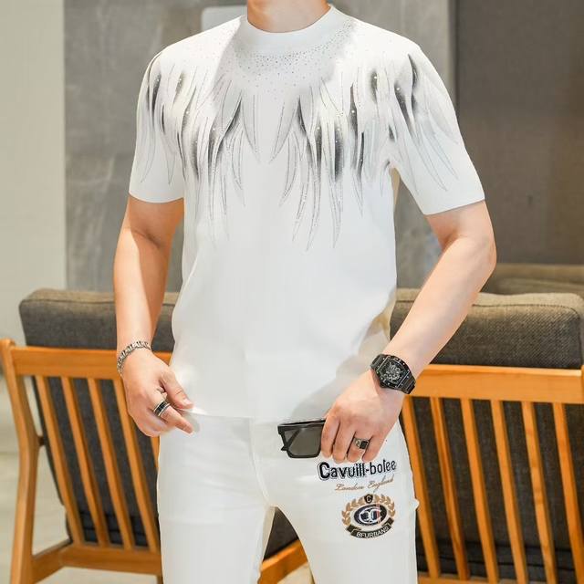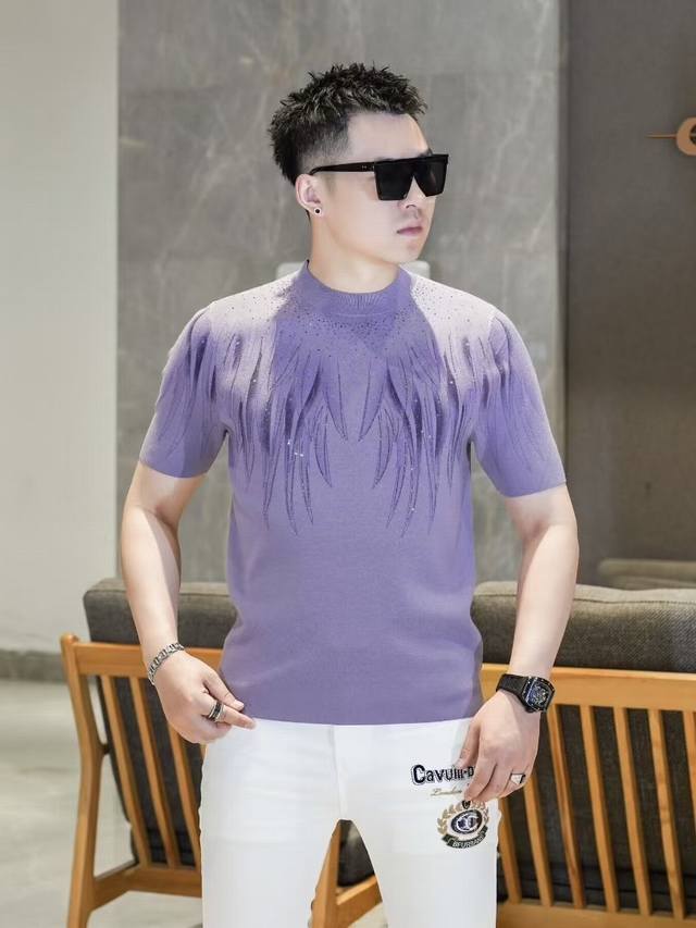 Givenc*Givenchy 2025Fw Autumn/Winter New Men's Fashion Casual Imported Mulberry Silk Short-Sleeve Knitwear. A timeless and stylish piece that always attracts attention with its unique flair. Made with custom-supplied Piquet knit fabric, the quilted design ensures an exceptionally smooth and delicate feel, free of any roughness, making it incredibly comfortable and breathable. The classic straight-cut double-needle hem and ribbed knit cuffs create a sophisticated and luxurious look, with a thick, full texture and a brilliant sheen. Every detail exudes a luxurious allure. Color: As pictured. Sizes: M-3XL.