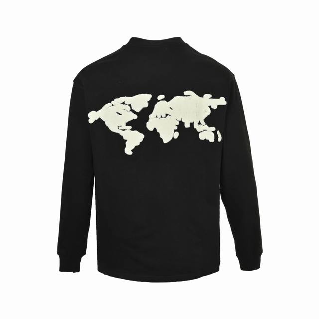 Good Brand embroidered Earth long-sleeved T-shirt. Made of 500g, ultra-high-quality fabric, the weight beats the market's 430g. Purchase the original from the official website and make a 1:1 pattern. Custom wash collar and hangtags are available, featuring all three labels. Detailed details are meticulously detailed! All threads are 22mm, distinguishing against 11mm threads for market-standard snagging. Fabric, size, workmanship, and color are all 1:1 patterned. Don't compare it with market-standard junk. The pattern and weight beat any other version on the market. Color: Black. Sizes: S-Xl.