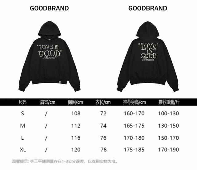 / Good Brand, Love Is Good Pearl Hooded Sweatshirt, unisex, 500g pure cotton fabri