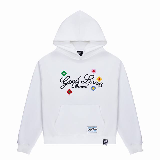 Goodbrand 2025Ss Goodloves 3D Embroidered Slogan Luxury Fashion Hoodie, Pure Cotton Double Yarn, Fabric 450G. Colors: White, Black. Sizes: S, M, L, XL.