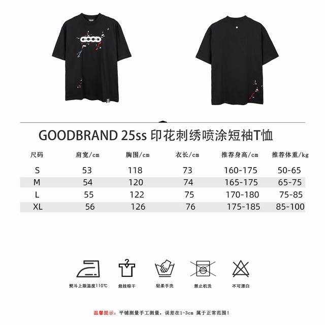 Goodbrand 25Ss printed embroidery spray short-sleeved T-shirt uses custom-dyed t