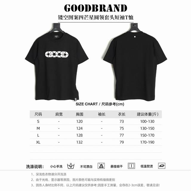 Goodbrand hollow pattern four-pointed star round neck pullover short-sleeved T-s