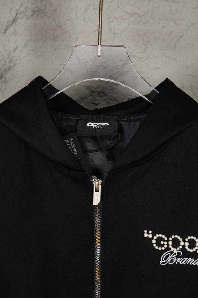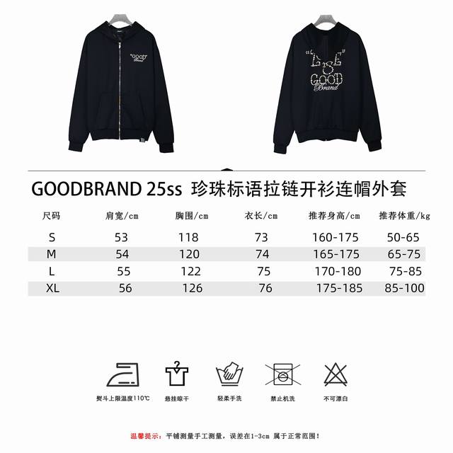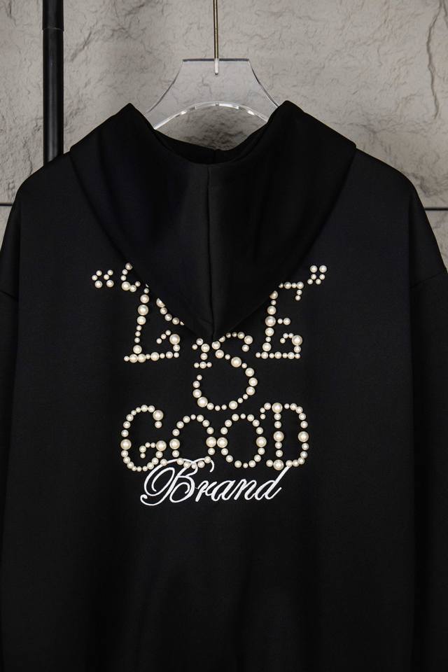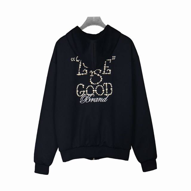 Goodbrand25Ss Pearl Slogan Zipper Cardigan Hooded Jacket, Unisex. Fabric: 480g Air Layer Mamba Cotton, high-quality weight! No deformation, no shrinkage, skin-friendly, versatile. Original from the official website, 1:1 replica with three labels and washing tags. Colors: Black, Red. Sizes: S, M, L, XL.