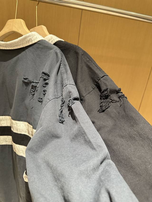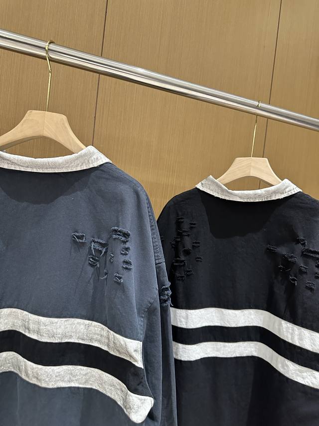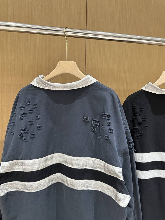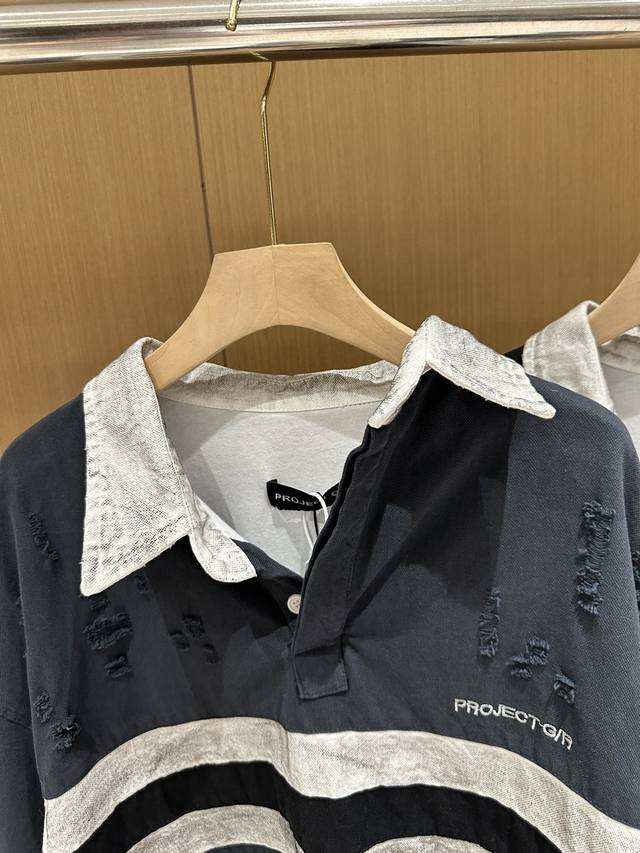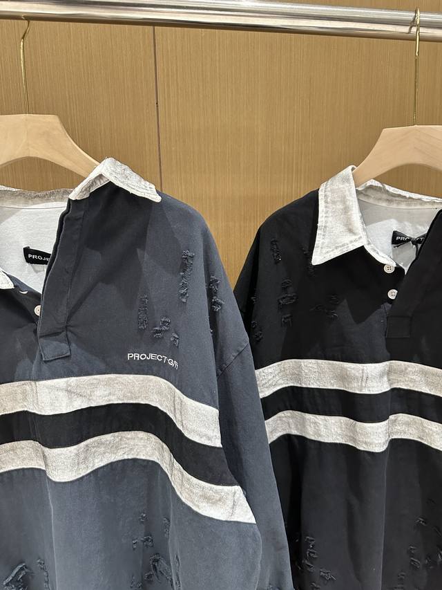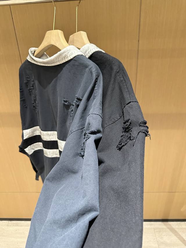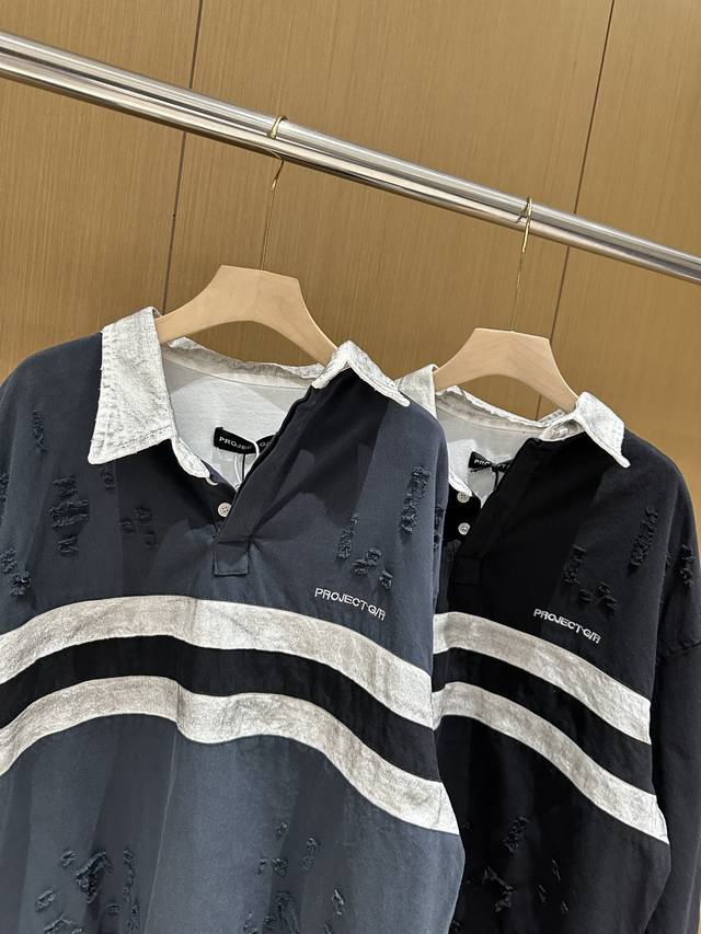 Grailz Learl Gr23Ss Distressed Polo Long-Sleeve Os Double-Layer Shirt Collar Sweatshirt Jacket