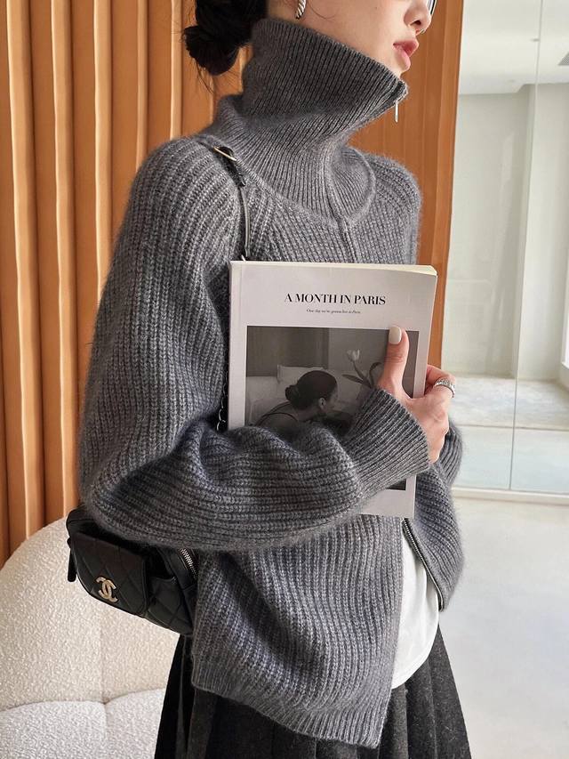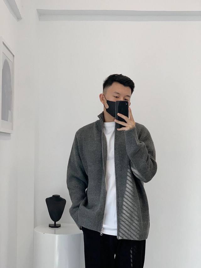 Maison Margiela 24Ss Mm6 Margiela six classic four-corner simple minimalist logo two-way zipper stand collar knitted cardigan jacket