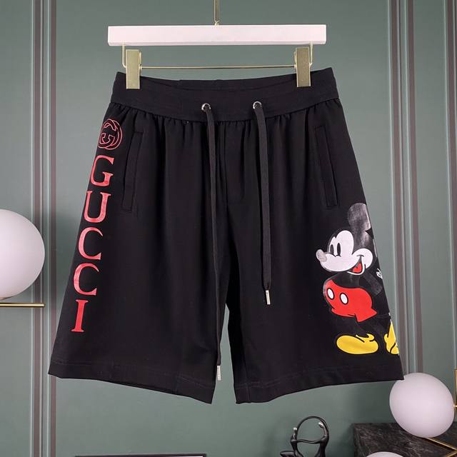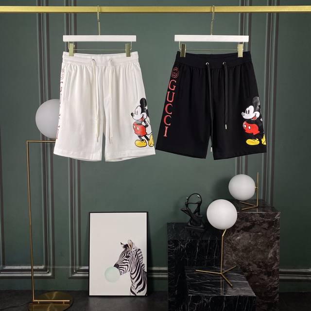 Gu 20 Early Spring Year of the Rat Limited Edition Mickey Mouse Logo Casual Shorts Ddd Original fabric, digital printing process, perfect details, unisex style, available in black and white Ddd Sizes: Mlxlxxl DDD