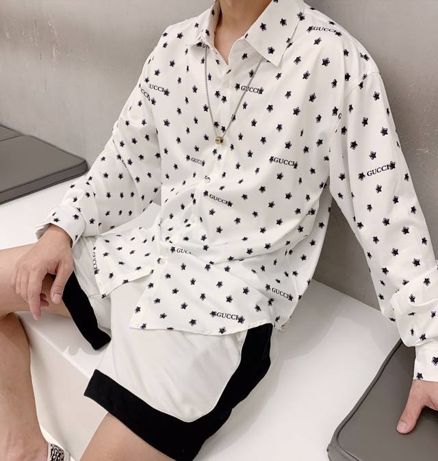 Gu Early Autumn New Letter Logo Long-Sleeve Shirt Ddd Custom Fabric Digital Printing Process Super Looks Great on, Sizes M, XL, XXL 4 DDD
