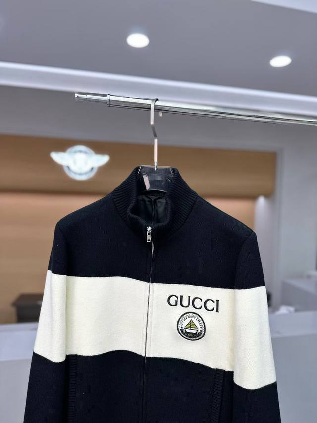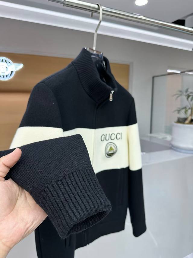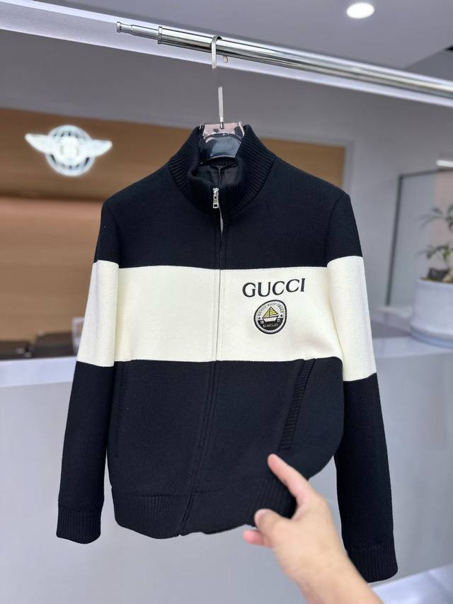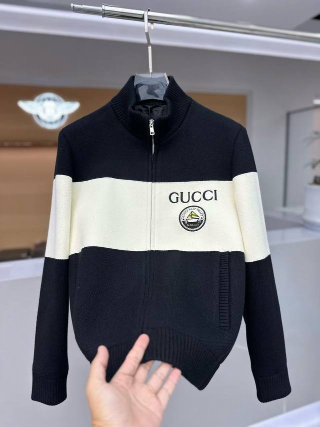 Guc*I 2025 Autumn/Winter New Men's Casual Knitted Jacket. Newest arrival, currently available. From a top-tier factory (P), the quality is impeccable! A very stylish piece, made with high-end custom fabric, its comfort and breathability are highly sought after. All-over logo design, looks amazing on! Original cut, details exude designer style, a must-have this season! Sizes: 48-56, maximum weight 190 lbs.