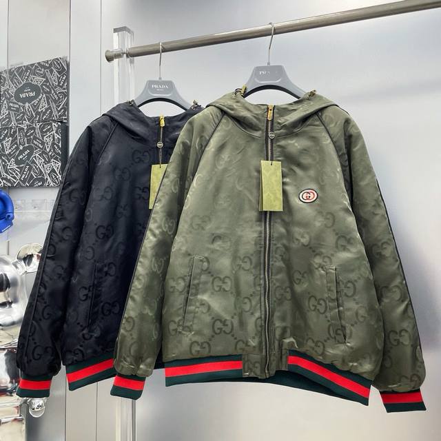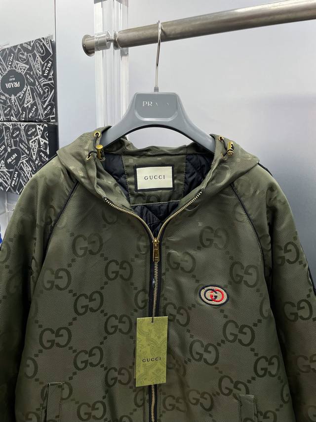 Gu*Gu 2025 Winter New Arrival: All-over Gg Jacquard Logo Down Cotton Jacket with Hood. This runway new arrival is in perfect condition, comfortable and warm, with rich and alluring colors. A truly outstanding design that effortlessly elevates your style. The workmanship is extremely meticulous and rigorous, with neat and delicate stitching! A masterpiece by a top designer! It doesn't look bulky and is super stylish! Sizes: M ~ XXL