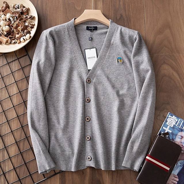 Hazzys Autumn New Cashmere Embroidered Thick Cardigan Coat (