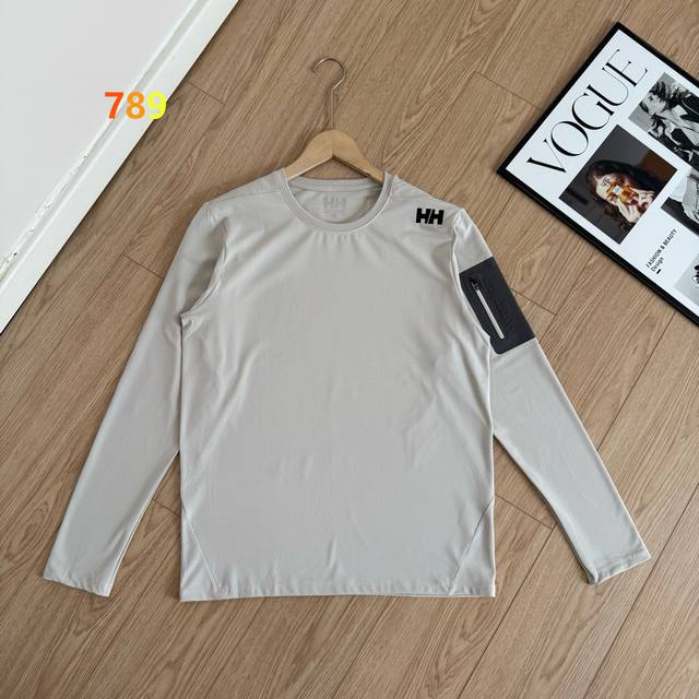 Helly Hansen Autumn Four-Color High-Elastic Long-Sleeve T-Shirt (DDD) Made with custom-woven high-elastic fabric, this T-shirt is lightweight, breathable, and provides excellent warmth. Soft against the skin, it wicks away sweat quickly, making it suitable for the fluctuating temperatures of autumn and ensuring a comfortable experience. The 3D cut combined with ergonomic design allows for free and unrestricted movement. Precision stitching enhances durability, and the cuffs are finished for a secure and durable finish. The classic Hh logo on the chest is simple and eye-catching, showcasing the brand's identity. Multiple colors are available: black for a versatile and understated look, grey and white for a clean and refreshing feel, and military green and blue for a more vibrant look. The long-sleeve design is perfect for autumn, offering windproof warmth and high-elasticity. Suitable for both sports and commuting, the simple and versatile cut can be worn alone or layered. Featuring signature brand details, this multi-functional long-sleeve T-shirt combines quality and functionality, meeting the needs of everyday life and sports in autumn. Comfortable, practical, and stylish. DDD - Colors: Black, Beige-Grey, Green, Blue