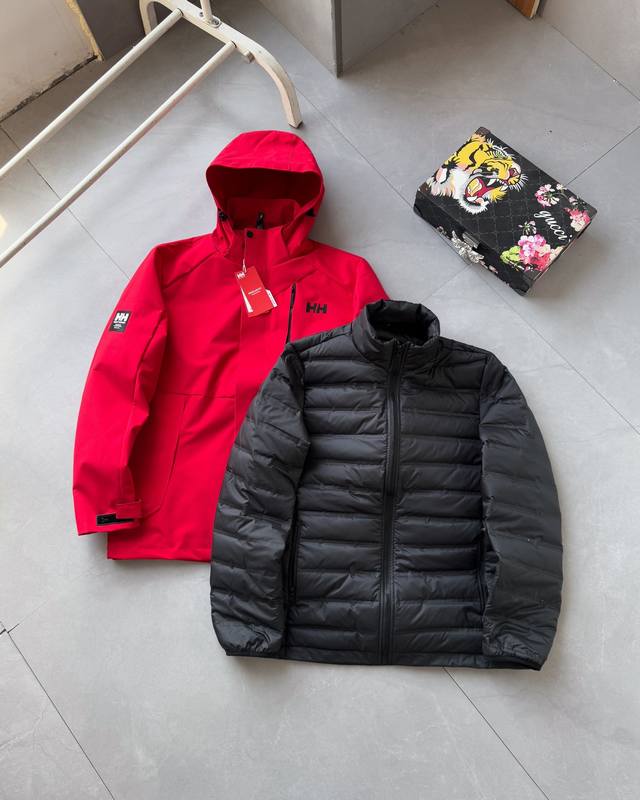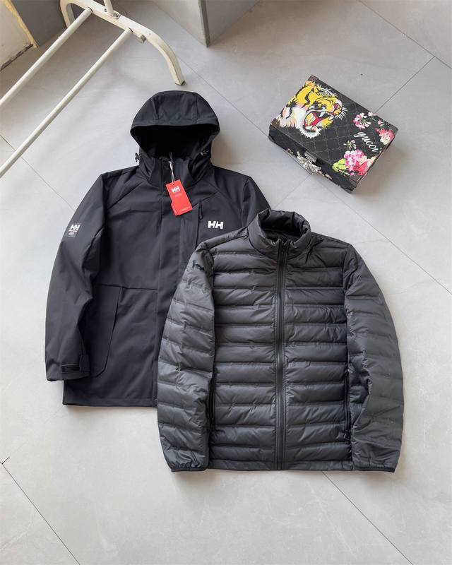 Helly Hansen Hh Men's and Women's Down Jacket, 3-in-1, Level I Down Liner, 3-in-1 Windproof Jacket, Couple Style, DDD. Suitable for various environments. Superb quality! This jacket is suitable for all ages and looks amazing! A truly waterproof and windproof windproof jacket, effective against heavy rain, frost, snow, and wind. Features a detachable down lining for a 3-in-1 windproof jacket!! One jacket does the work of four, easily handling any weather changes. A truly high-quality product with excellent value. Can be worn alone or layered, flexibly adapting to changing outdoor weather conditions!! Suitable for hiking, trekking, daily travel, and various outdoor activities. Retail price: 3900+. Uses Texaspore waterproof and breathable technology, all-around waterproof and breathable fabric, durable outer layer, and a three-proof heat-sealed warm down lining, providing excellent warmth! Detailed Description: Hood: Detachable hood, adjustable field of vision and tightness! Reinforced shoulders, zippered and seam-sealed pockets on both sides; adjustable cuffs, fits well around the wrists, not only comfortable to wear but also effectively prevents wind and sand from entering. Adjustable hem system, outer and inner care labels, classic silicone logo