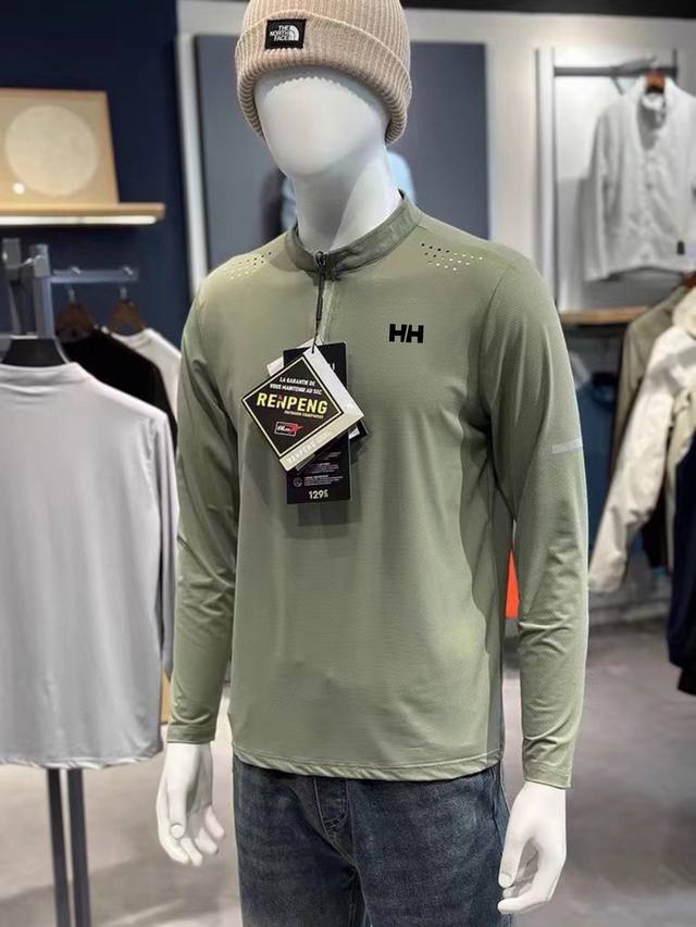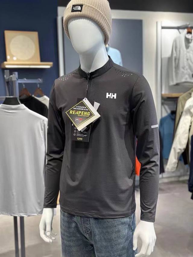 Helly Hansen Men's European and American Style Raglan Half-Zip Long-Sleeve T-Shirt High-Stretch Athletic Fitness Base Layer!