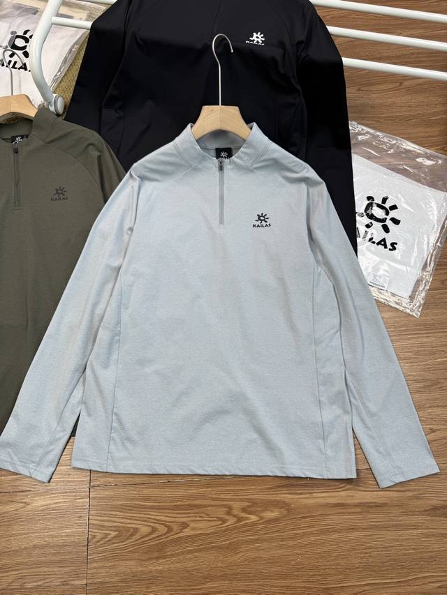 High quality, packaged in Sydney paper. Kailas' new fall 25 collection! 5A-rated antibacterial and healthy deodorizing fabric! Men's outdoor sports casual half-zip long-sleeve top! Highly recommended by the shopkeeper! Available online and in stores! Absolutely amazing! Impeccable fit and craftsmanship! Made with 5A-rated fabric for customers! Healthy, eco-friendly, and antibacterial! Breathable, comfortable, and skin-friendly! Moisture-wicking and washable! Photon-activated antibacterial technology! Stays fresh and clean with no sticking or odor! Fabric contains stretch! Simple and versatile, perfect for everyone! Don't miss out!